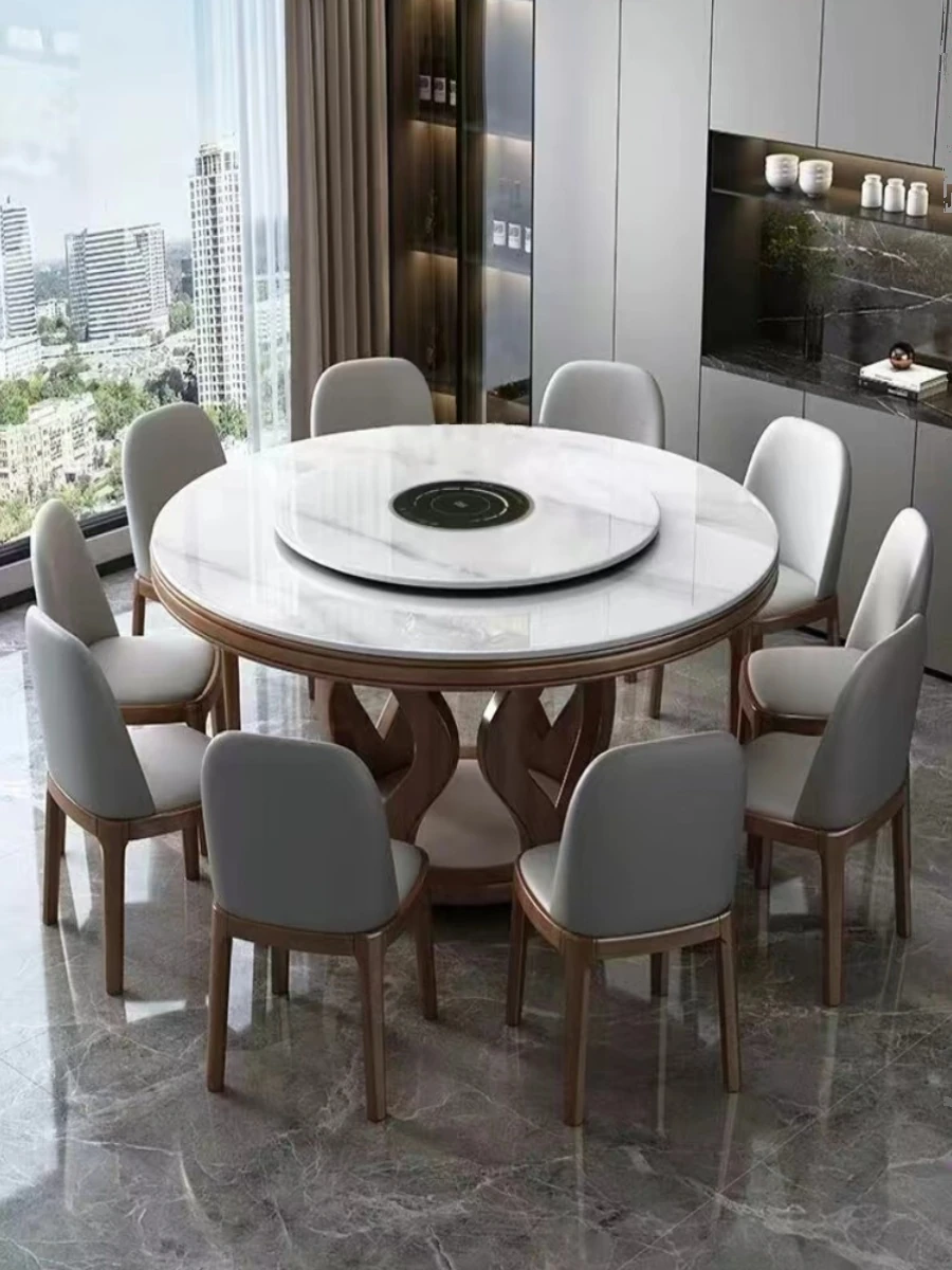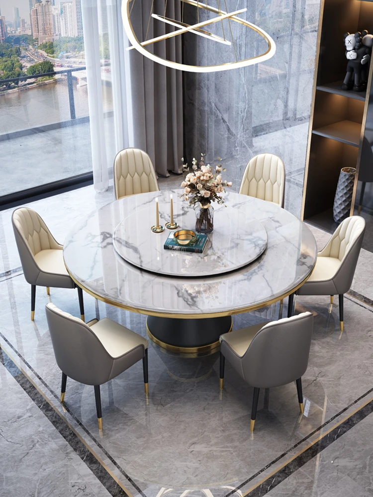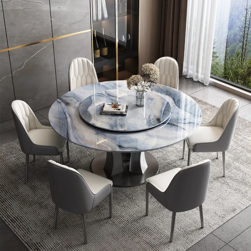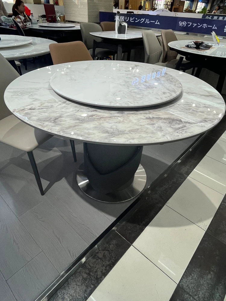 戎匠の天然プラチナダイヤモンド無垢材食卓 - モダンでシンプルなイタリアン大理石製ラウンドテーブル、回転盤付き!家族や友人との特別なひとときを彩る、美しいデザインと高品質な素材で、あなたのダイニングを格上げします。