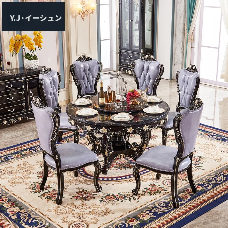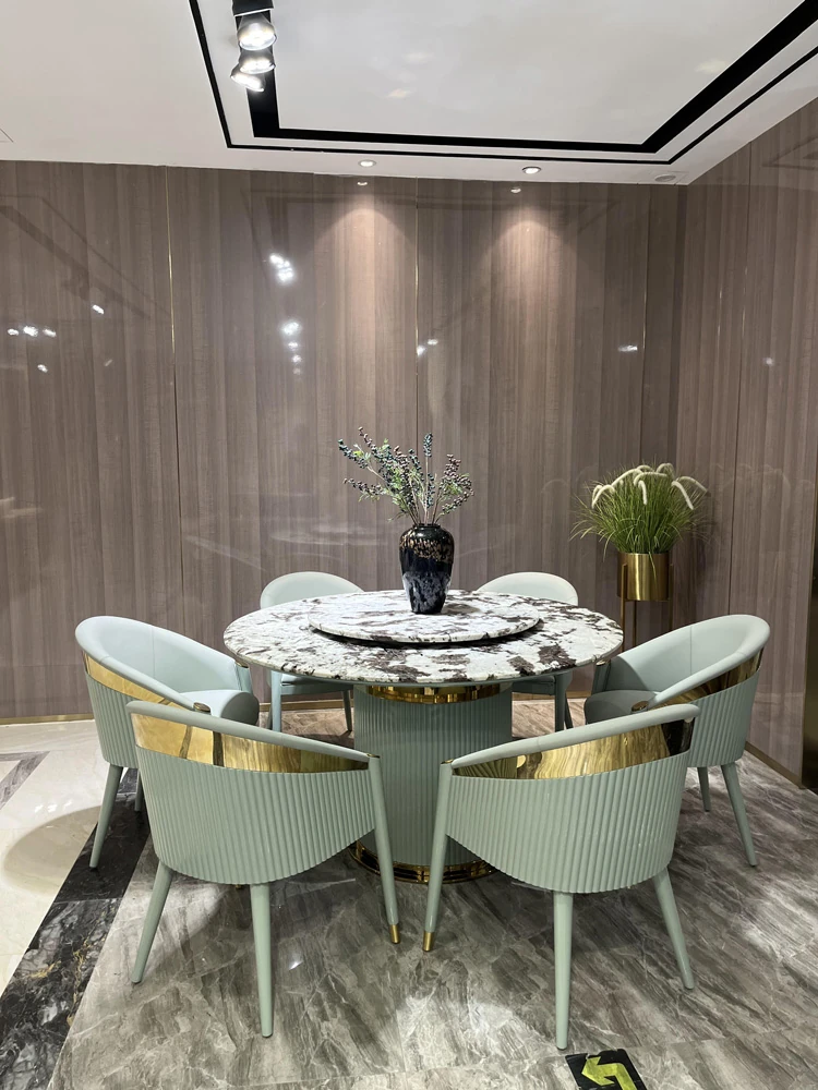 イタリアンラグジュアリー ダイニングテーブルチェアセット 天然大理石使用の洗練された丸型テーブル 高級デザイナーズ家具で特別な食卓を演出!