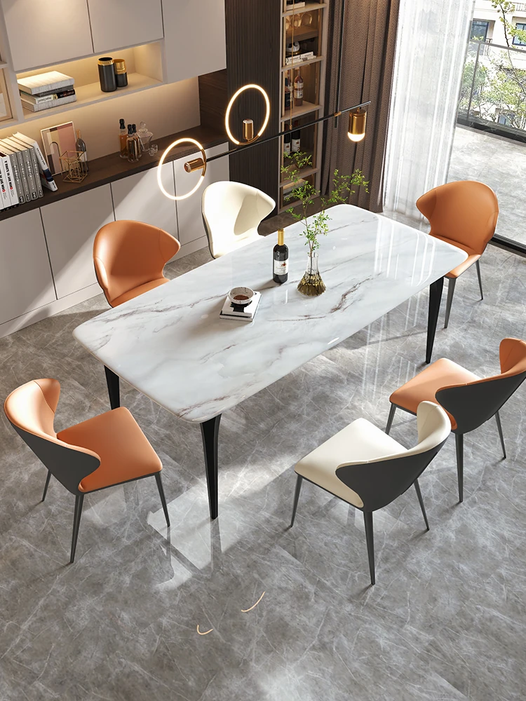 天然フィンディホワイトラグジュアリー石材ダイニングテーブル&チェアセット|イタリアンミニマリズムの極み|高級別荘向け|大理石長方形食卓|おしゃれで上質な食事空間を演出!