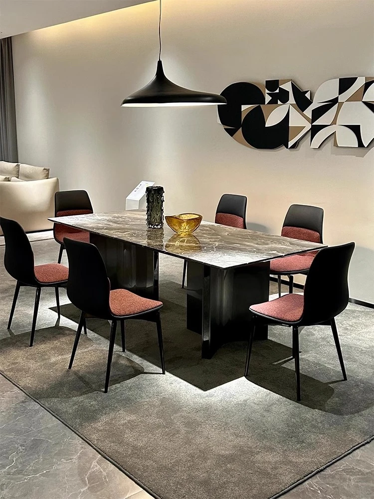 天然石の贅沢なダイニングテーブル - ブルガリブラック長方形イタリアンライトラグジュアリー 家庭用 小型住宅向け 本格木製大理石テーブル&チェアセット