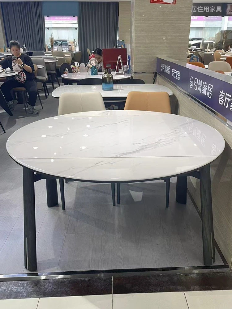 伸縮式大理石テーブル|丸・四角両用|小型住宅に最適なモダンデザインのマイクロクリスタル石製ダイニングテーブル|おしゃれで省スペース!
