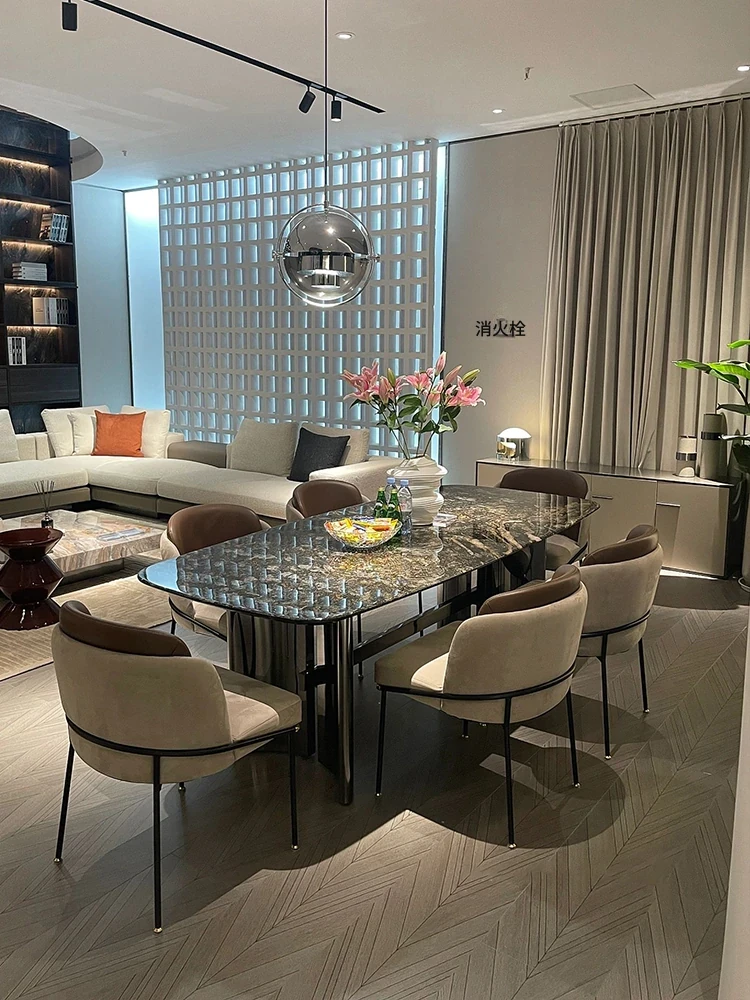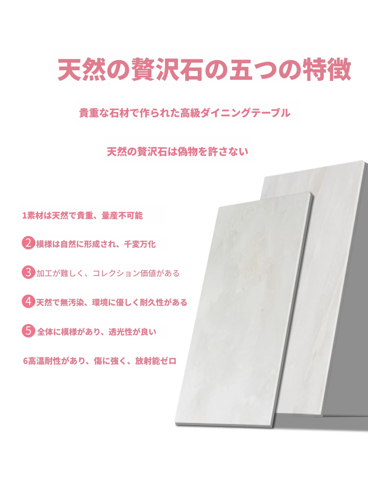 天然プラチナダイヤモンド豪華石製ダイニングテーブル&チェアセット|モダンミニマルで上品な高級感|別荘や家庭に最適な長方形食卓