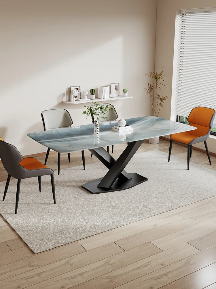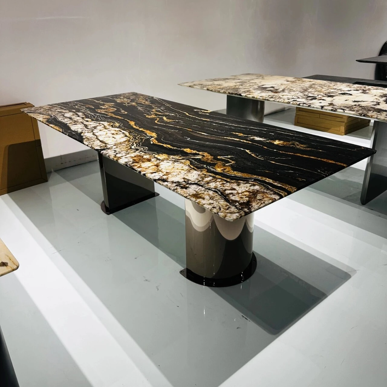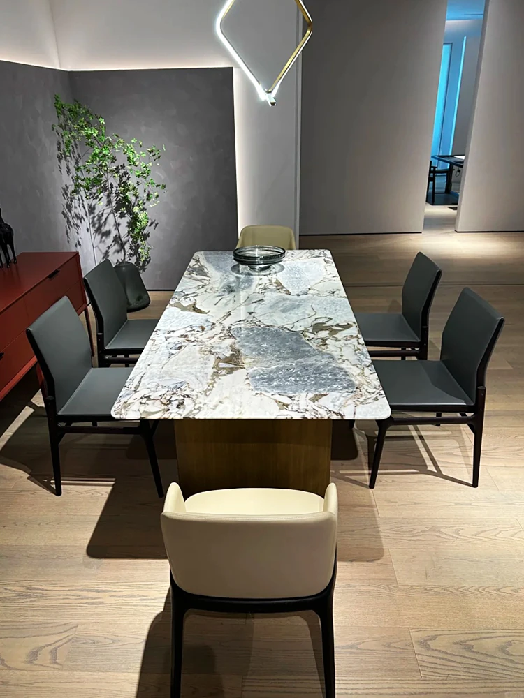 イタリアンラグジュアリー天然大理石ダイニングテーブル - モダンでシンプルなデザイン、別荘や家庭のリビングにぴったりの長方形テーブル。上質な素材で特別な食事体験を提供します!