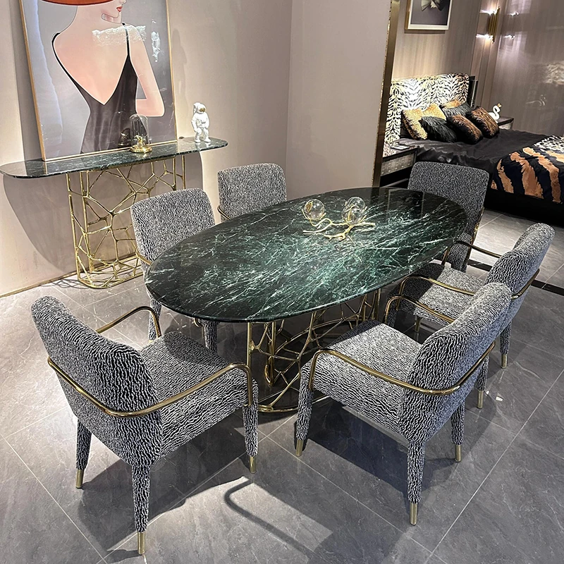 DQダイチン純天然インポート大理石インディアングリーン2024新作デザイナーイタリアンラグジュアリー軽食卓、上質な高級感を演出!