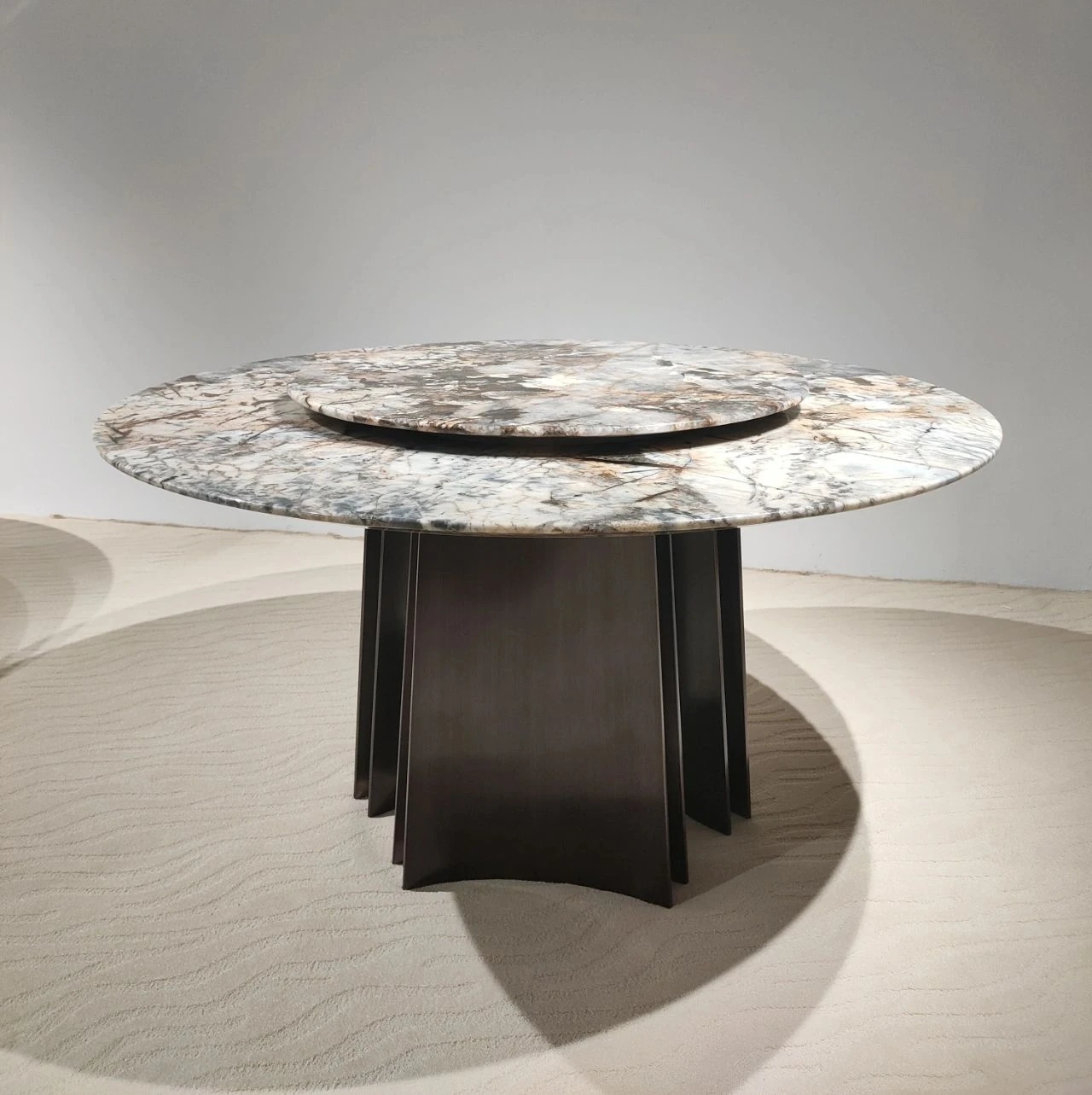 WARM潘多拉高級天然大理石ラウンドテーブル - フォスハンの輸入軽奢華別荘向け、贅沢な食事体験を提供する高級ダイニングテーブル。あなたの空間を一層引き立てる美しさをお楽しみください!