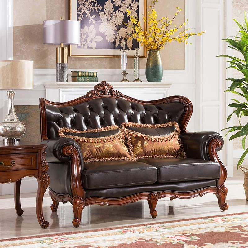 American Top Grain Leather Sofa Set - Double-Sided Carved Design, European Style Genuine Leather, Solid Wood Furniture Combination for Elegant Living Rooms