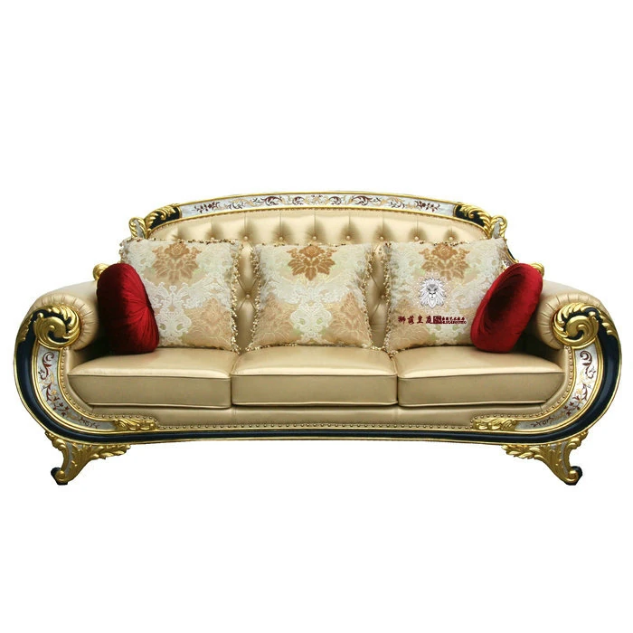 Genuine Lionfall Royal Luxury European Handmade Painted Sofa - Imported Top-Grade Cowhide, Solid Wood, and Gold Foil Accents for an Exquisite Living Space.