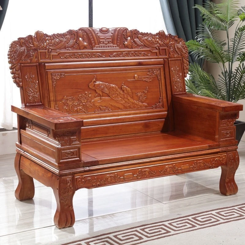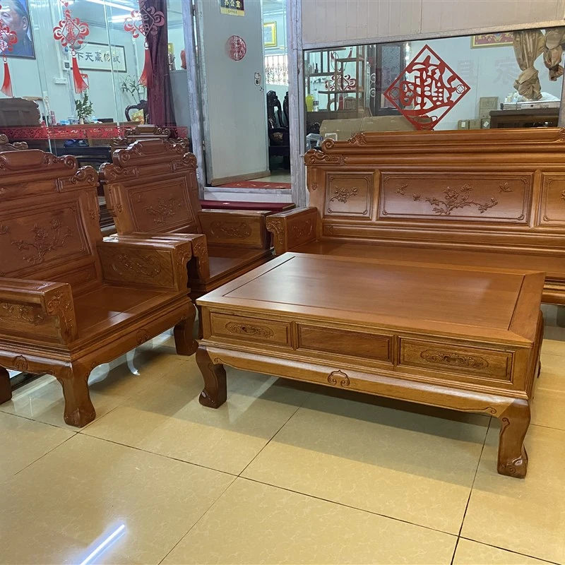 Luxury Solid Wood Sofa Set - Pineapple Wood for Spacious Living Rooms, Featuring Red Camphor and Camphor Wood. Perfect for Rural and Large Homes!