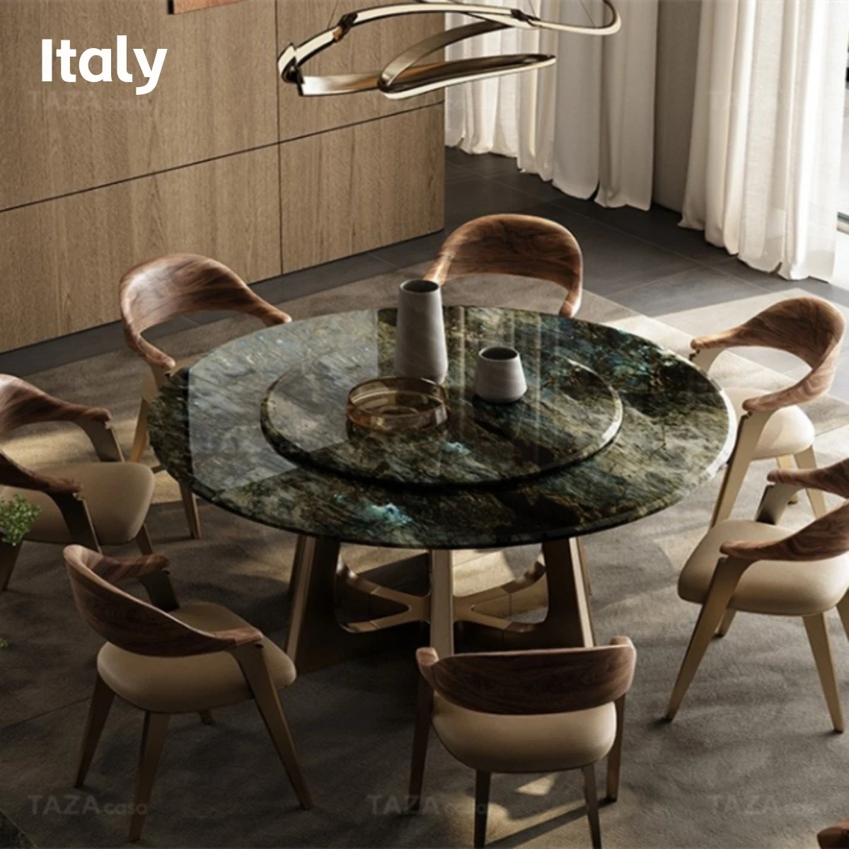 Italian Luxury Dining Table and Chair Set - Designer Round Marble Dining Table for Villas - Exquisite Natural Stone High-End Furniture