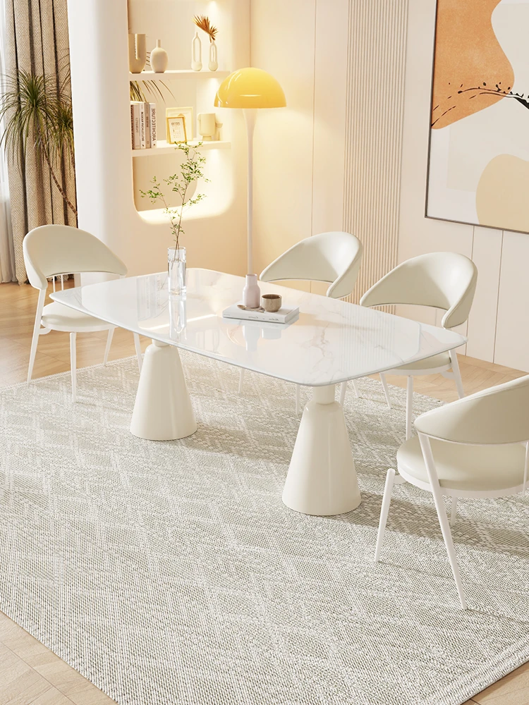 Elegant Cream Minimalist Solid Wood Marble Dining Table - Luxurious High-End Rectangular Design for Small Spaces, Modern White Dining Table