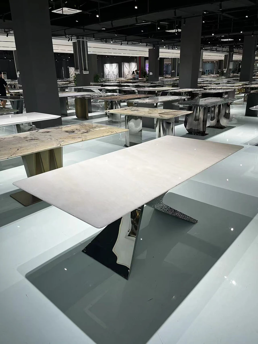 Rongjiang Natural Snow Mountain Flying Fox Luxury Stone Dining Table - Modern Minimalist Design for Home, Elegant and High-End Feel, Perfect for Villas, Rectangular Shape