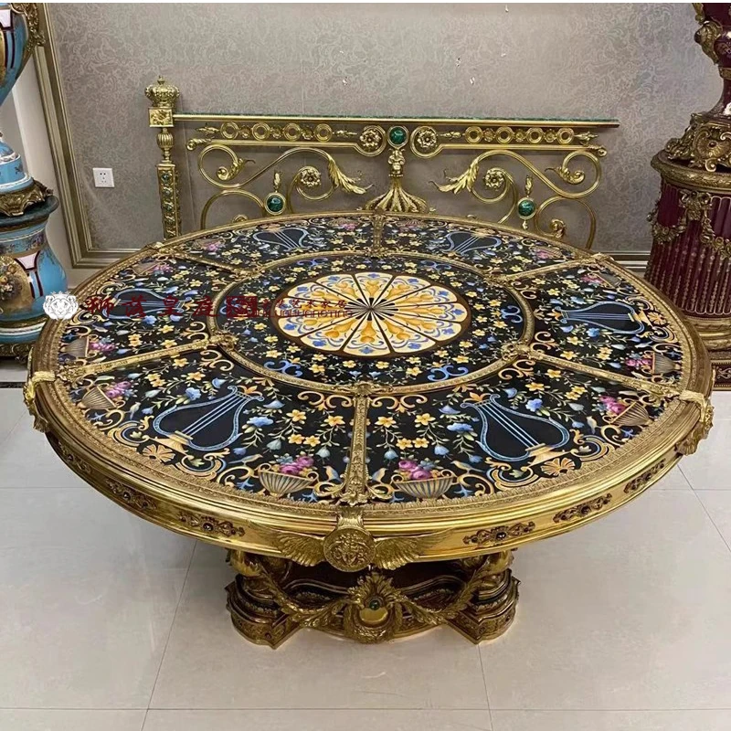 WARM Universe Golden Silk Luxury Marble Dining Table - Imported Natural Round Table for Villas, High-End Dining Experience from Foshan