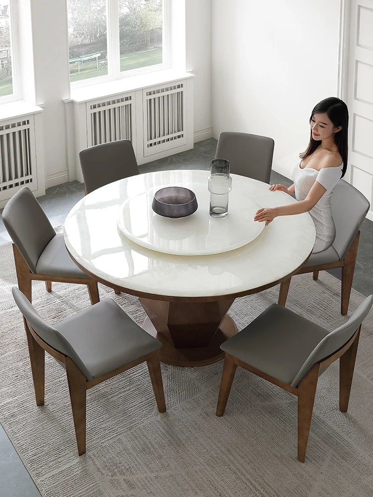 Nordic Luxury Natural Marble Round Dining Table with Rotating Tray - Elegant Solid Wood Design for 10 People - Perfect for Home Dining in 2025