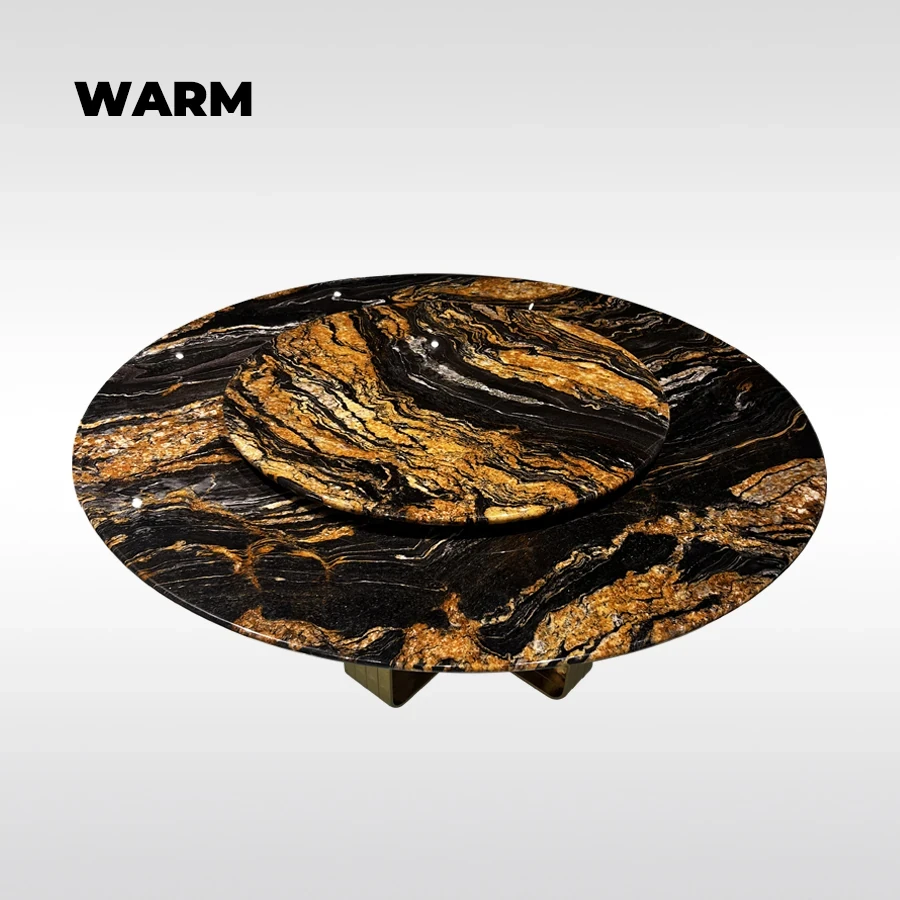 WARM Universe Golden Silk Luxury Marble Dining Table - Imported Natural Round Table for Villas, High-End Dining Experience from Foshan