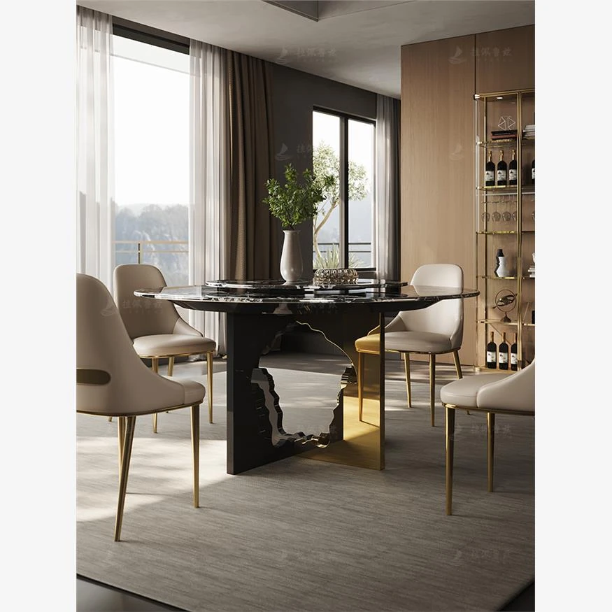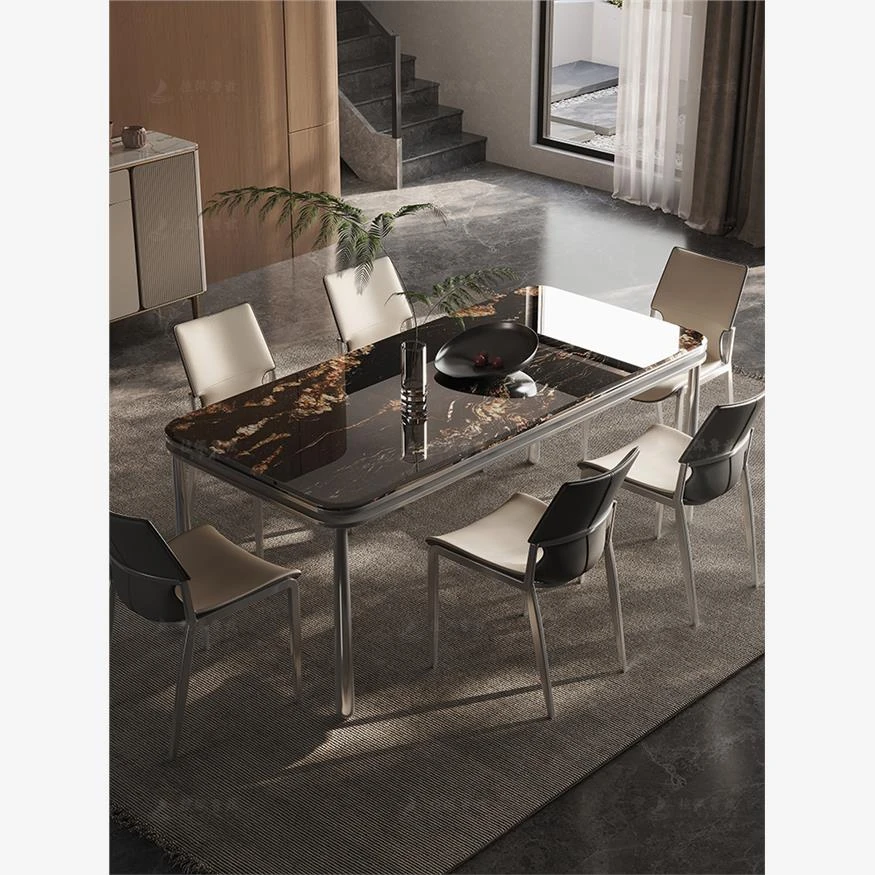 Elegant Marble Dining Table and Chair Set - Italian Luxury Villa Design with Stainless Steel Base for Spacious Living Rooms