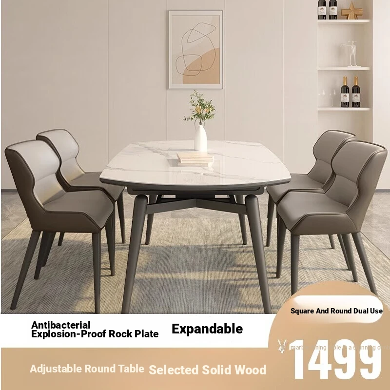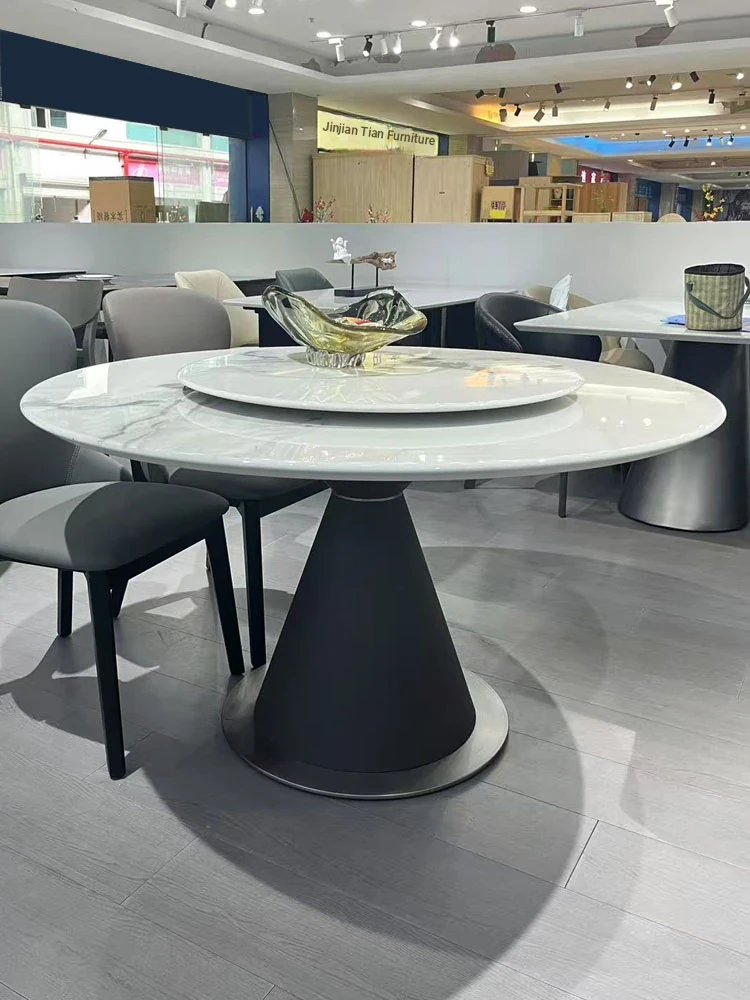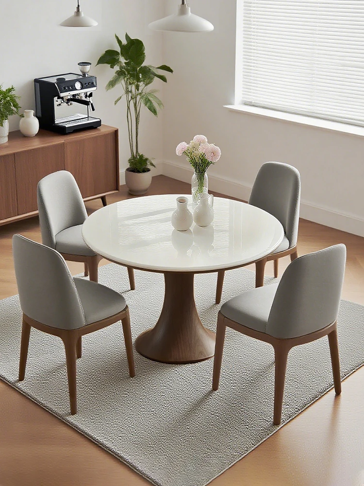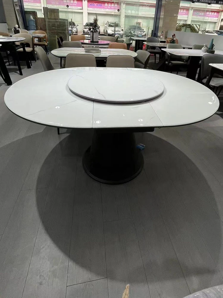 Elegant Round and Oval Marble Dining Table with Microcrystalline Stone and Natural Solid Wood – Modern Minimalist Expandable Table with Rotating Tray for Home Use