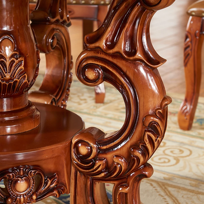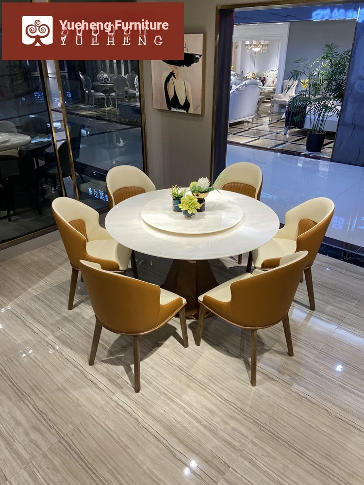 Elegant European Style Dining Table and Chair Set - Luxurious Round Solid Wood Dining Table with Marble Finish and Rotating Centerpiece for American-Inspired Dining Experience
