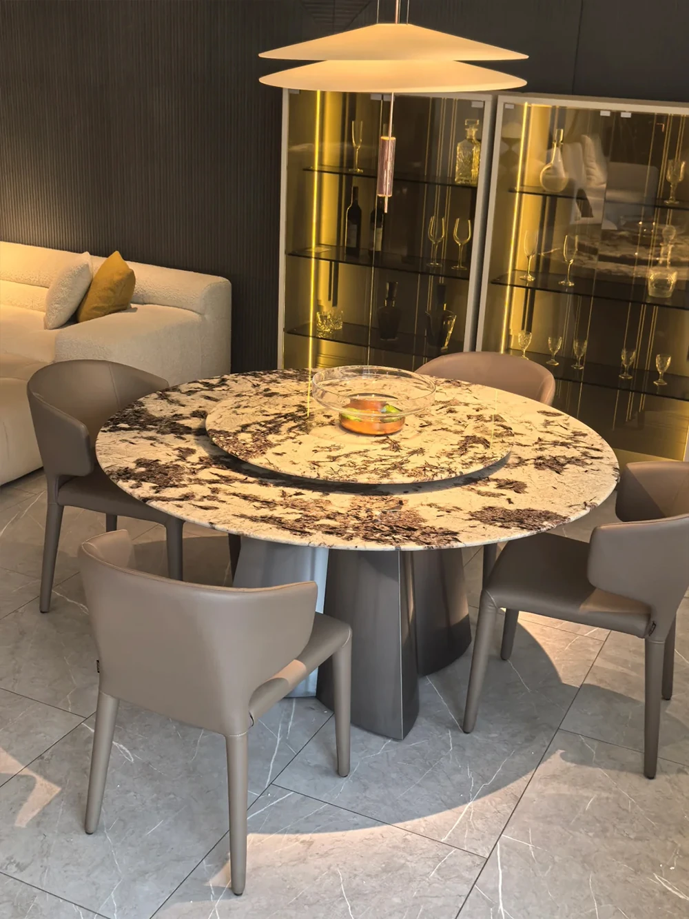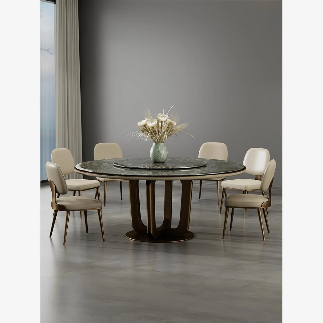 Luxury Marble Dining Table Set - Modern Round Table with Chairs for Home Use, Featuring Elegant Rotating Design, Perfect for Villas and Upscale Dining Experiences.