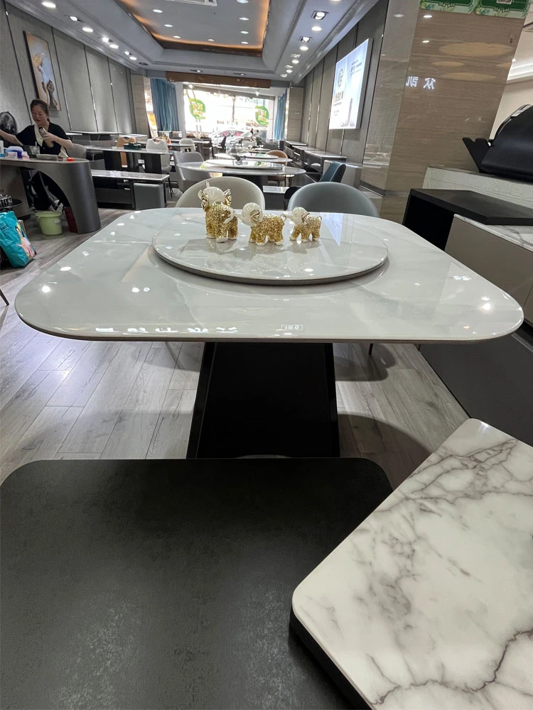 Luxury Natural Snow Mountain Fox Marble Dining Table and Chairs Set - Modern Minimalist Design for Small Spaces with Rotating Round Table