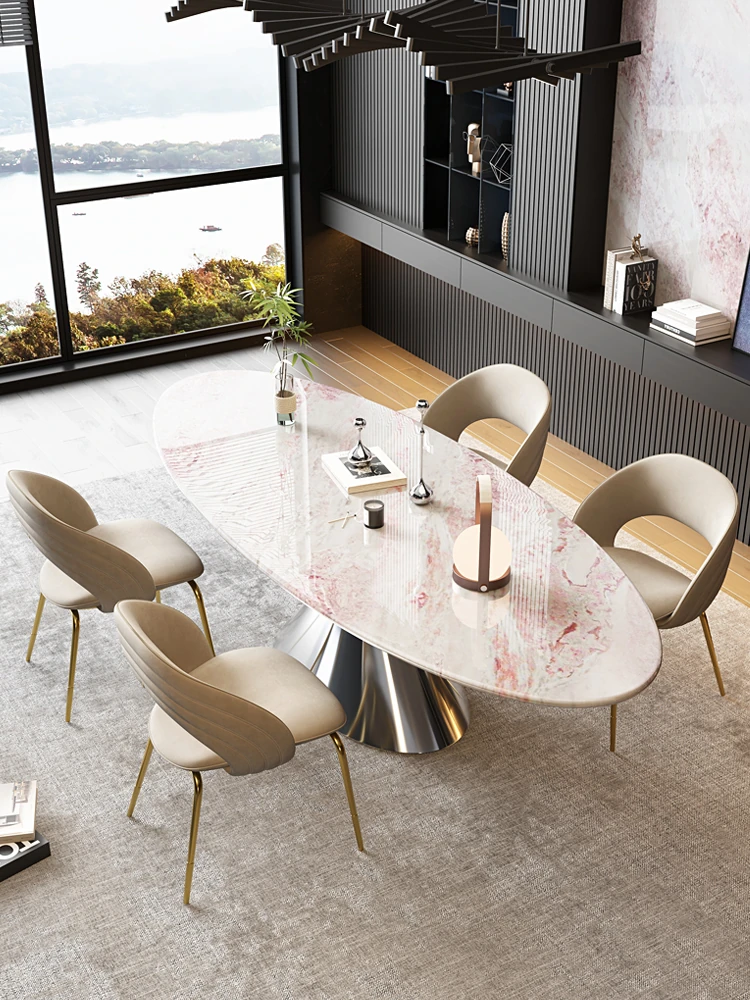 Imported Natural Luxury Stone Pandora Oval Dining Table - High-End Villa Marble Dining Table with Water Drop Shape for Spacious Living Areas