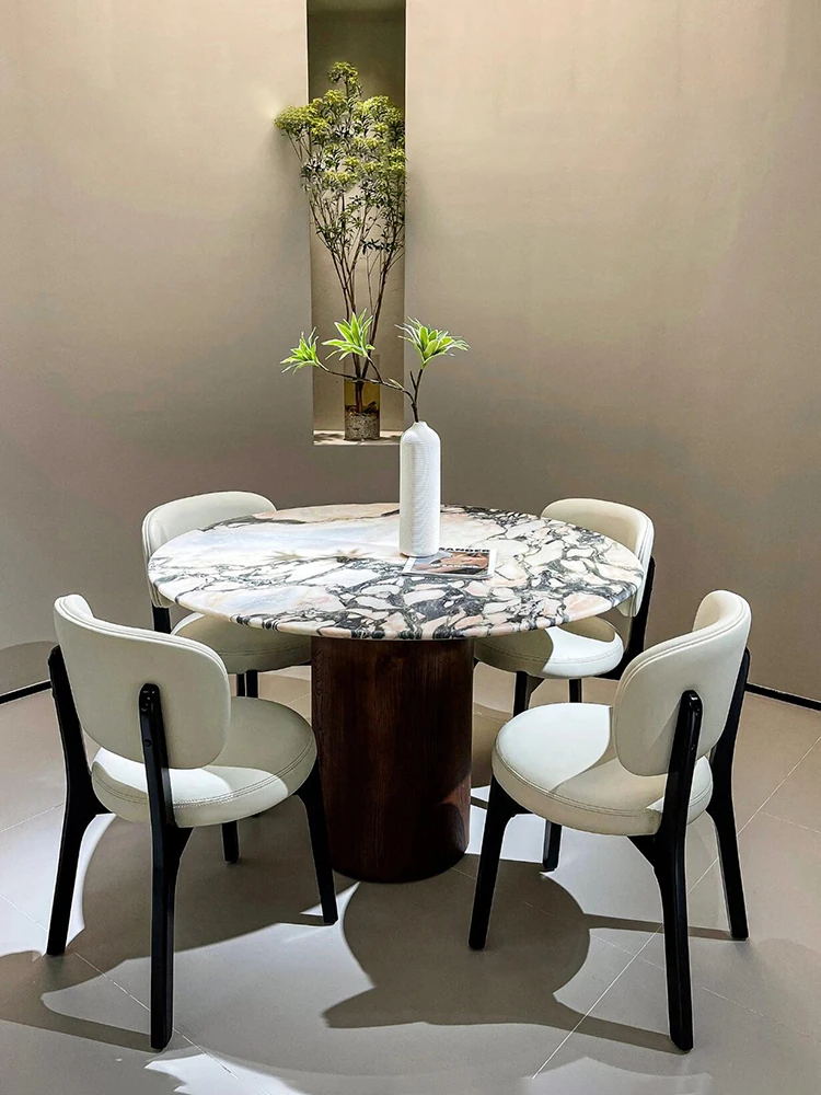 Luxury Natural Marble Dining Table and Chairs Set - Modern Minimalist Large Round Table for High-End Villas and Home Use, Perfect for Elegant Dining Experiences