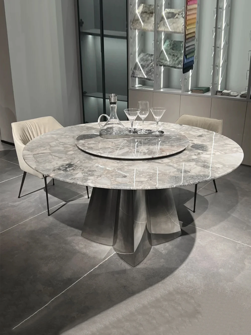 Italian Luxury Round Marble Dining Table for Villas - Modern Minimalist Design by Expert Designers, Perfect for Sophisticated Living Spaces.