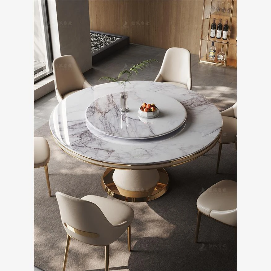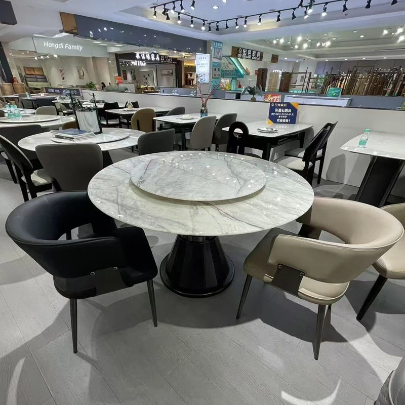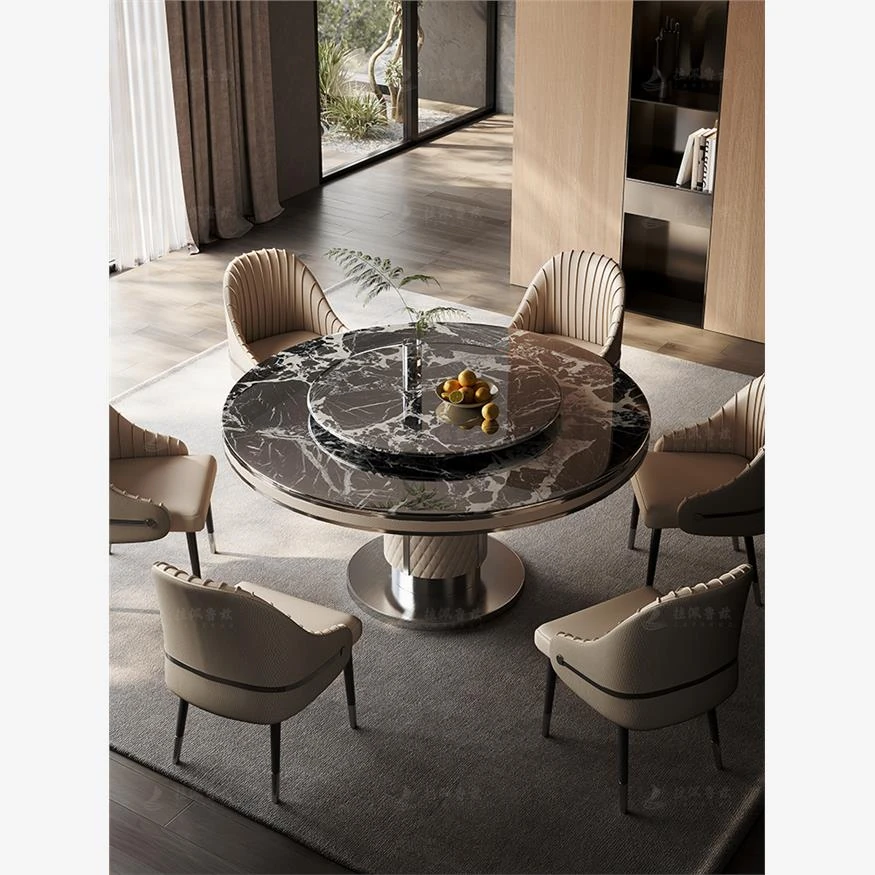 Elegant Round Marble Dining Table with Rotating Tray - Modern Luxury Home Décor for Villas, High-End Natural Stone Design