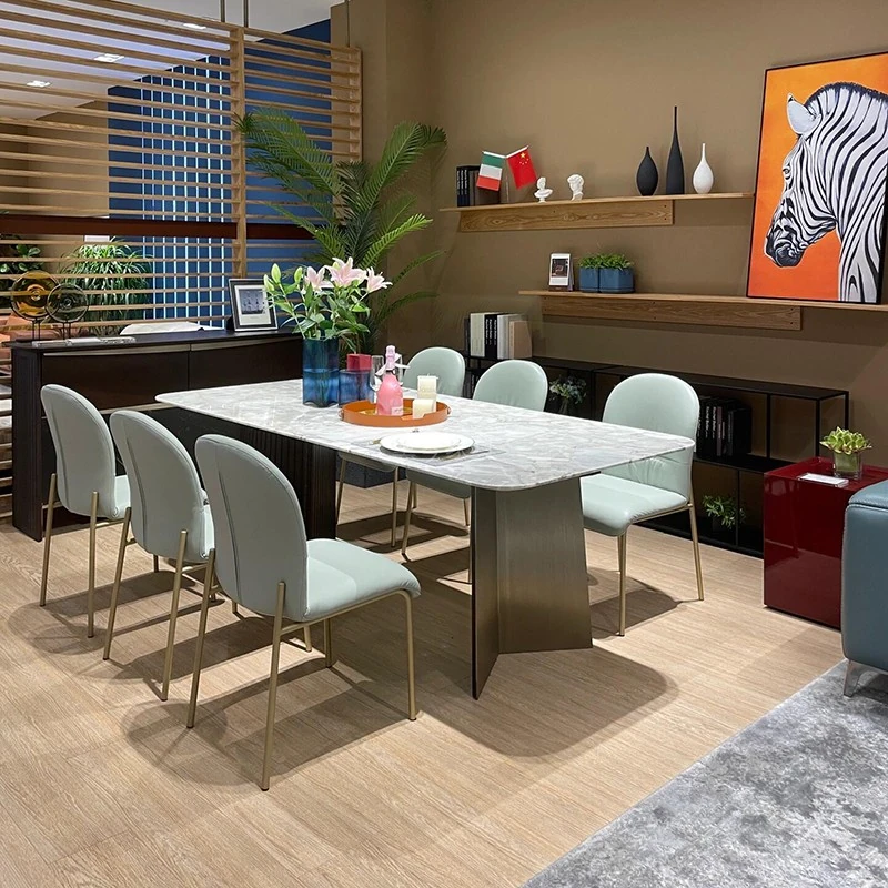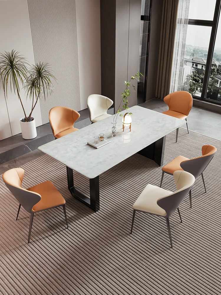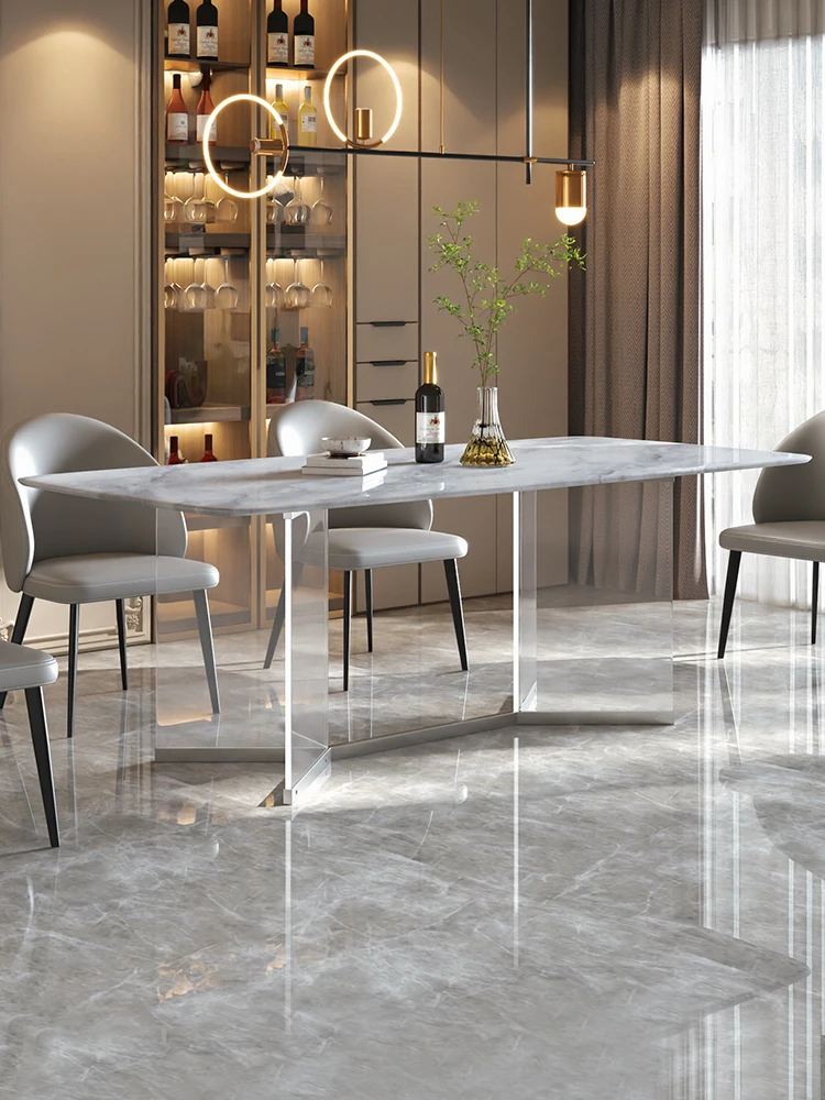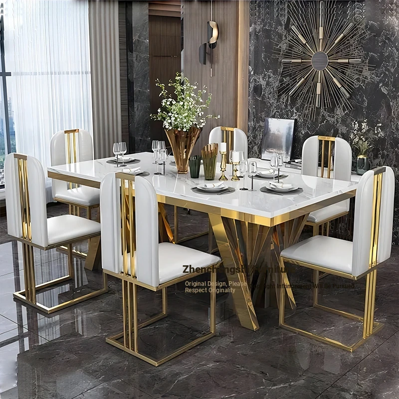 Postmodern Luxury Stainless Steel Marble Dining Table and Chair Set - Rectangular High-End Dining Table for Spacious Villas with Premium Rock Plate Design