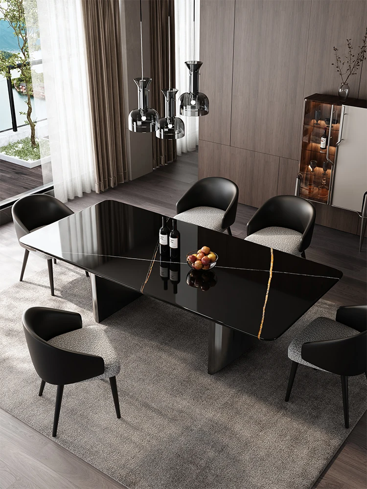 Premium Natural Black Gold Marble Dining Table - Modern Minimalist Designer Rectangle Luxury Table, Perfect for Stylish Dining Experiences.