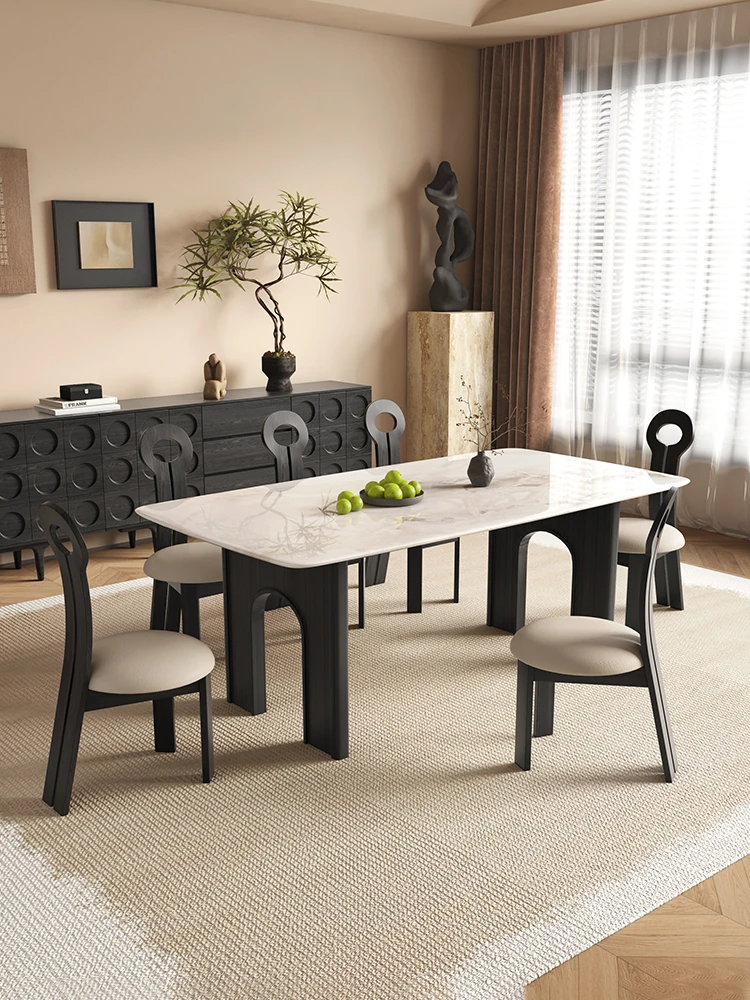Natural Pandora Luxury Stone Dining Table and Chairs - Italian Minimalist High-End Villa Home Rectangular Marble Dining Table for Elegant Dining Experience