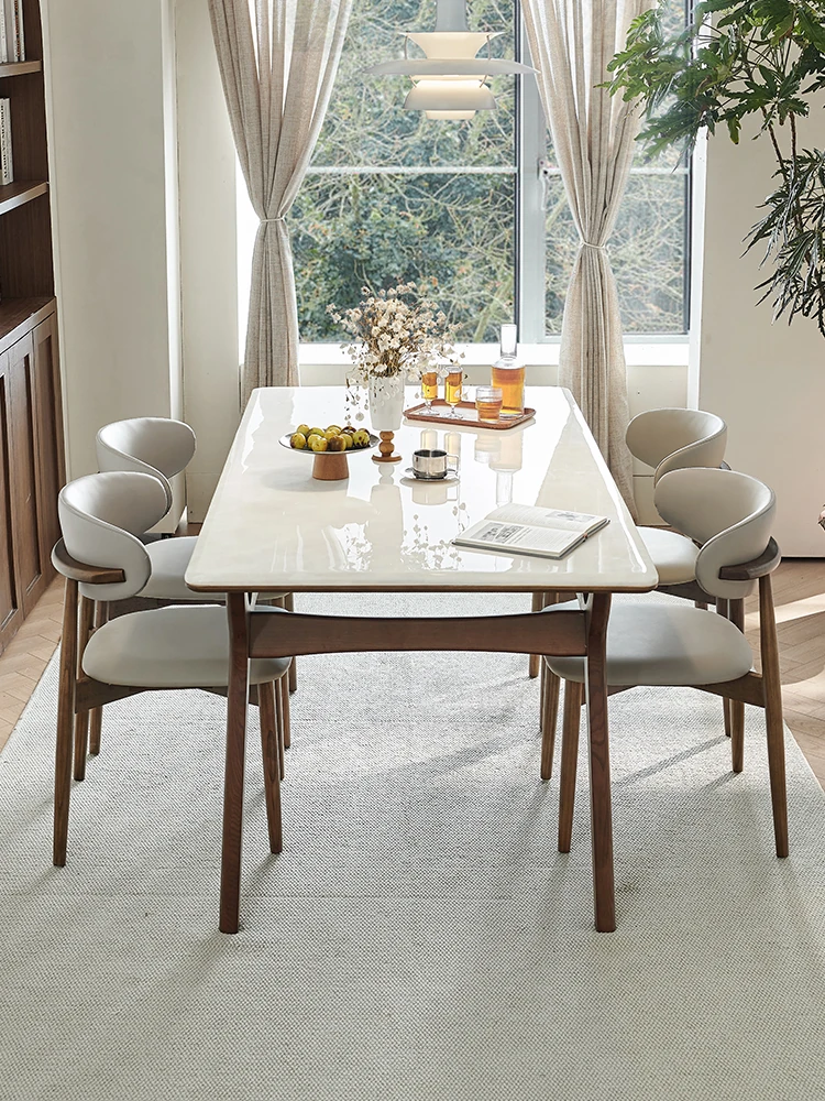 American Vintage Retro Solid Wood Dining Table - Space-Saving Rectangular Marble Dining Set for Small Homes with Luxurious Microcrystal Stone Chairs