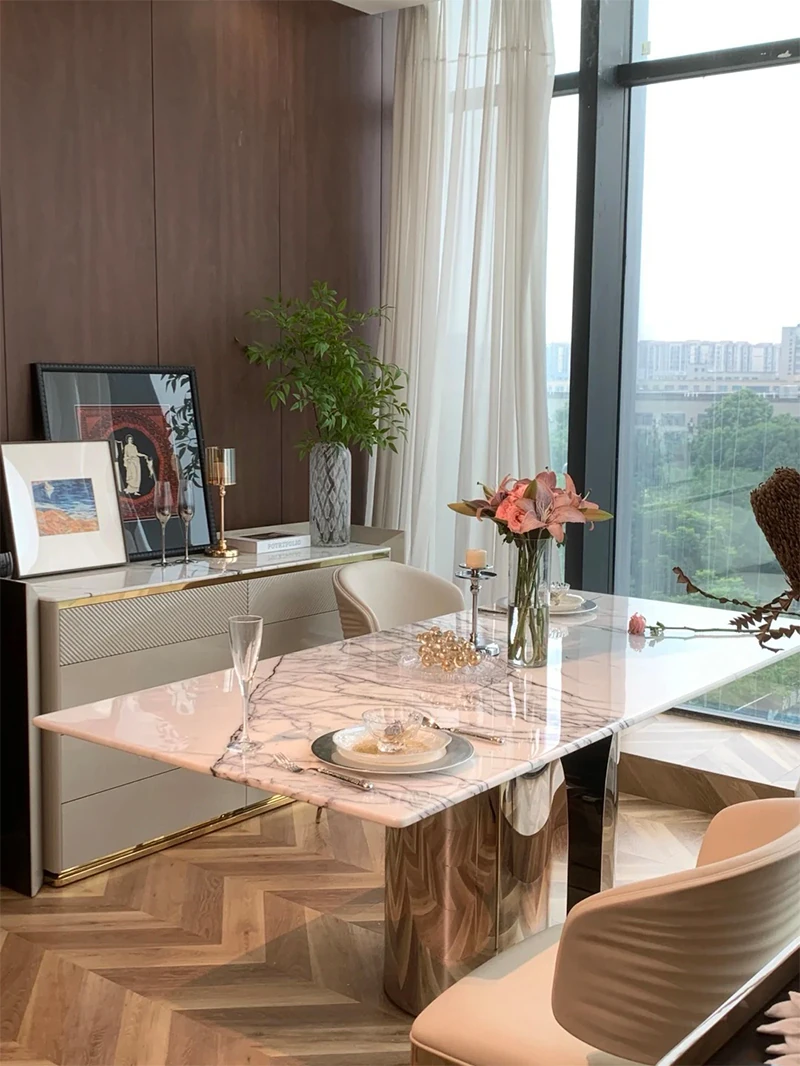 Luxury Natural Snow Plum Marble Dining Table Set - Elegant Italian Minimalist Design for Villas and Homes - Rectangular High-End Marble Dining Table with Chairs