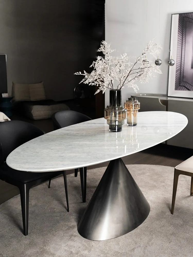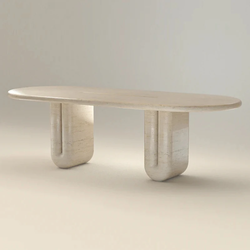 Minimalist Vintage Natural Cave Stone Dining Table - Elegant Italian-Style Oval Design with Authentic Marble for Modern Homes