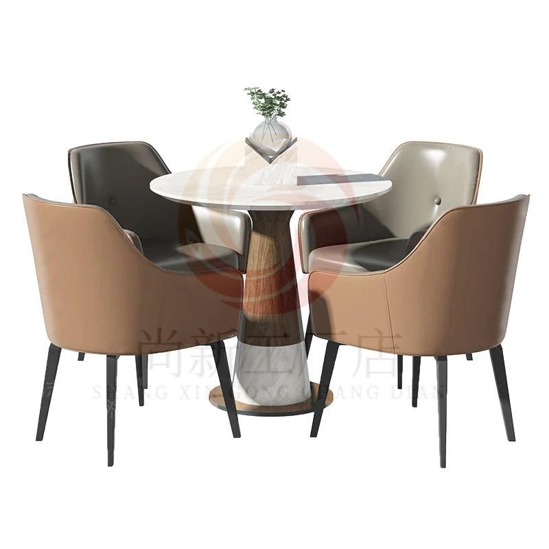 Elegant Marble Dining Table and Chair Set - Modern Minimalist Design for High-End Restaurants and Stylish Showroom Meeting Spaces, Perfect Small Round Table for Sophisticated Dining Experiences.