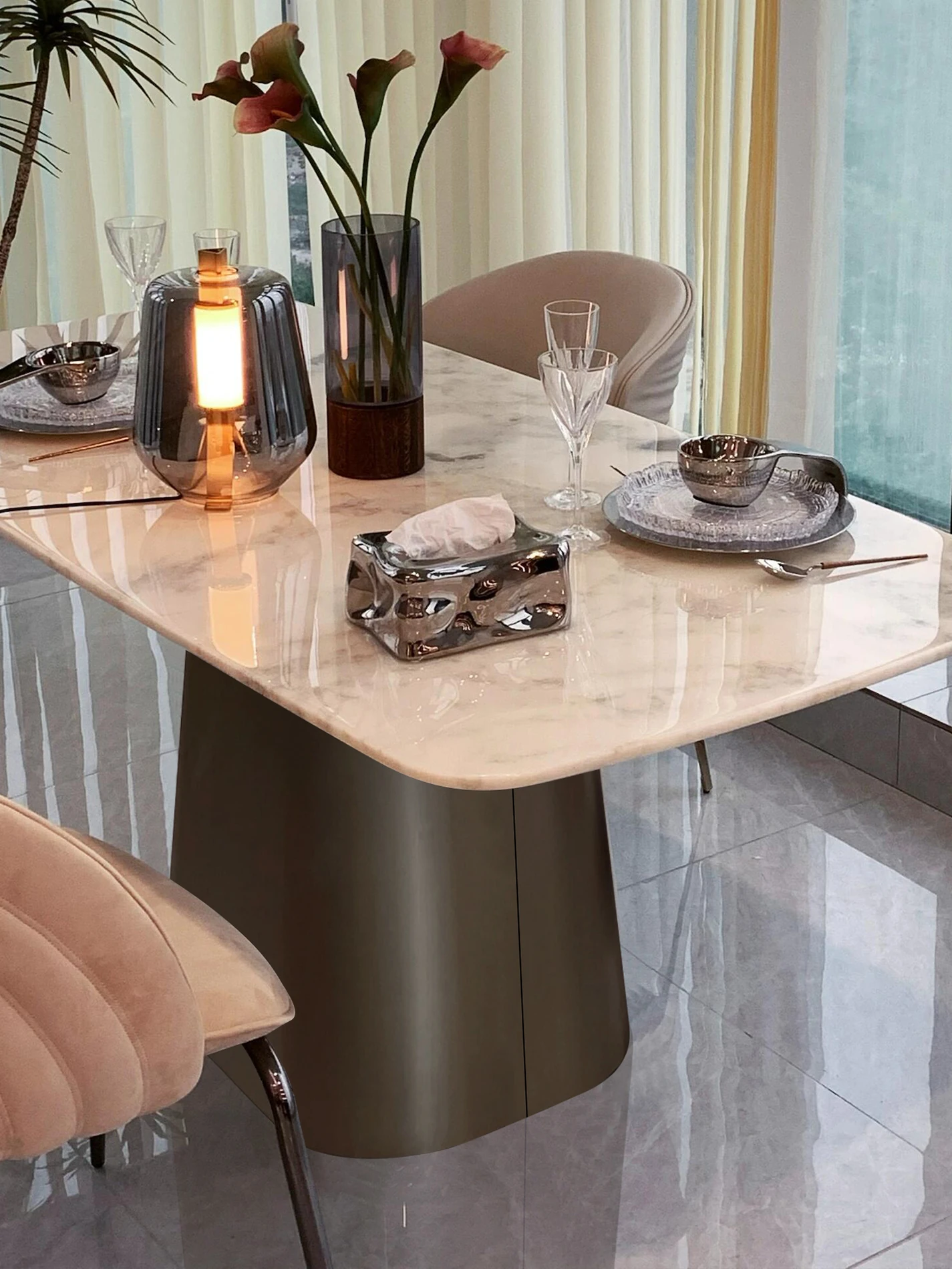 Stylish Marble Dining Table Set with Modern Design – Elegant Rectangular Dining Table for Home and Clubs, Perfect for Contemporary Living Spaces