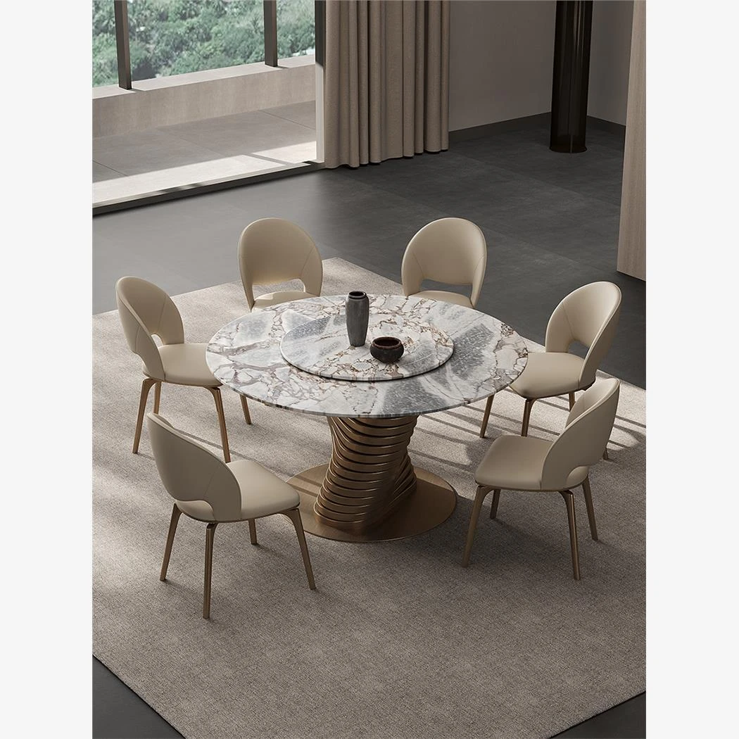 Elegant Italian Minimalist Round Dining Table with Natural Marble - Premium Soft Decoration Solution for Modern Homes