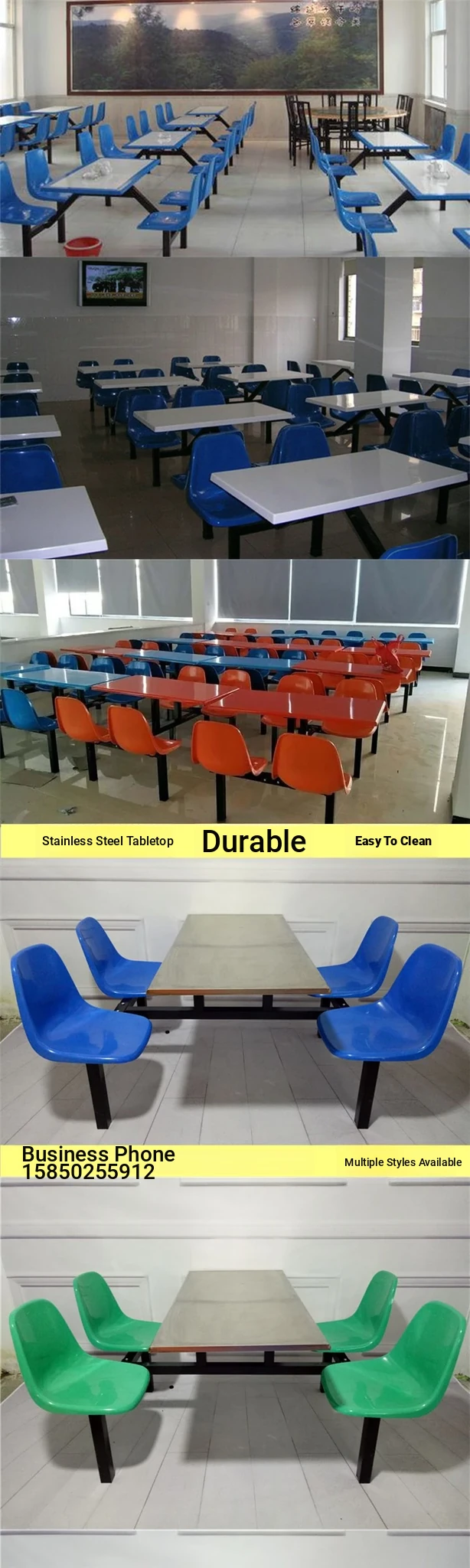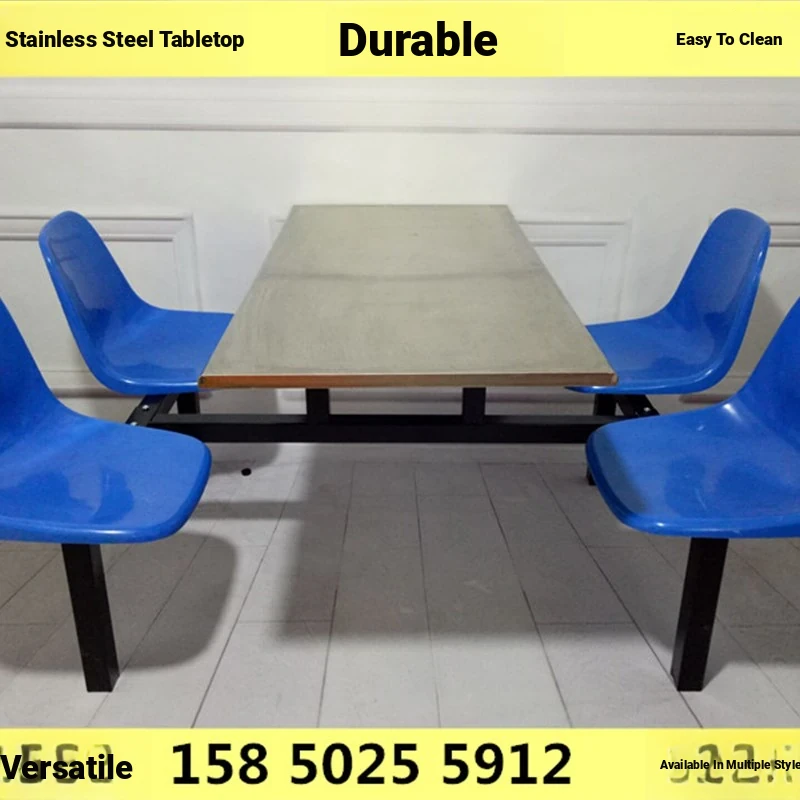 4-Person Stainless Steel Dining Table Set - Space-Saving Fast Food Table and Chairs for Students, Cafeterias, and Outdoor Use with Comfortable Backrests