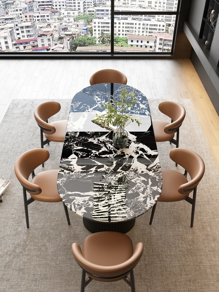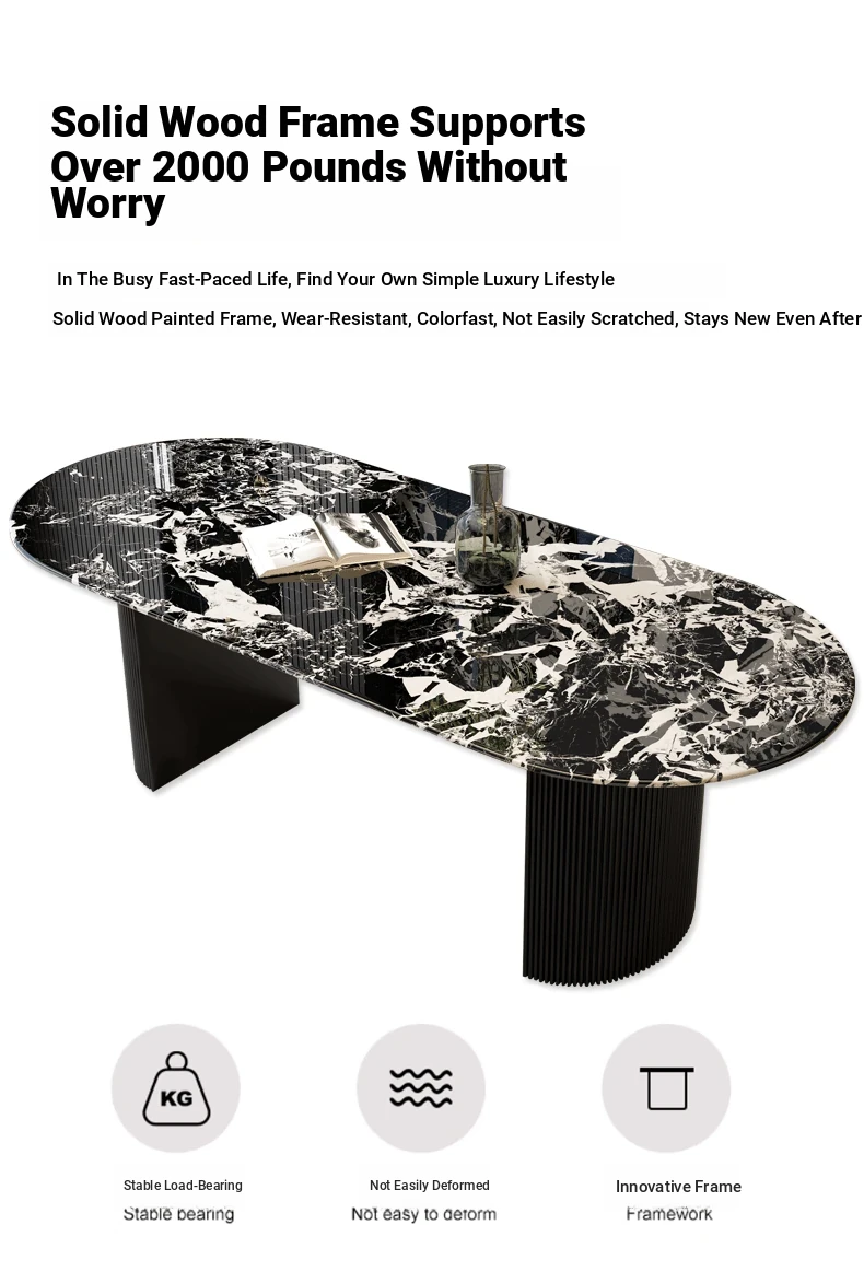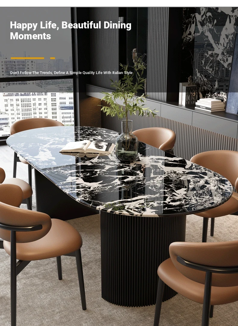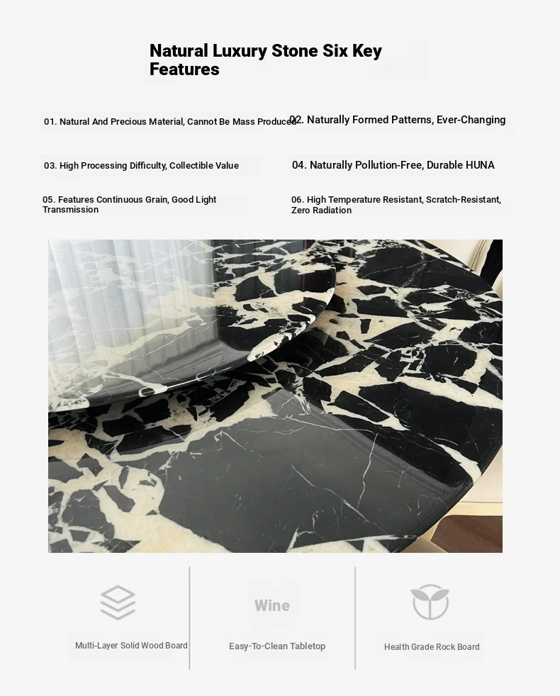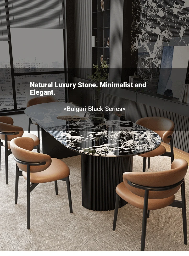 86.61in*39.37in dining table +8 chairs/natural luxury stone Bulgari Black([False one to ten]])