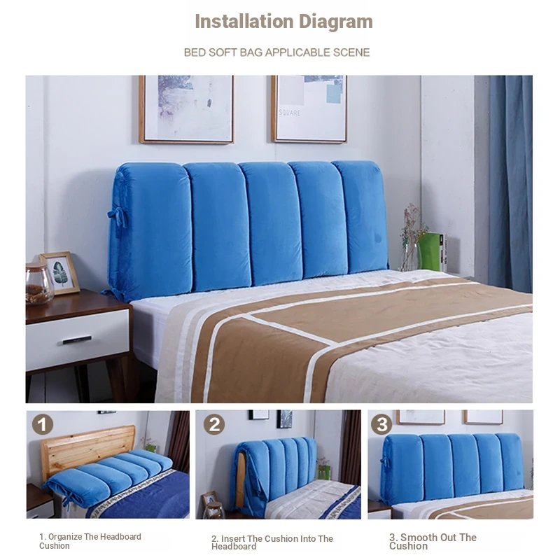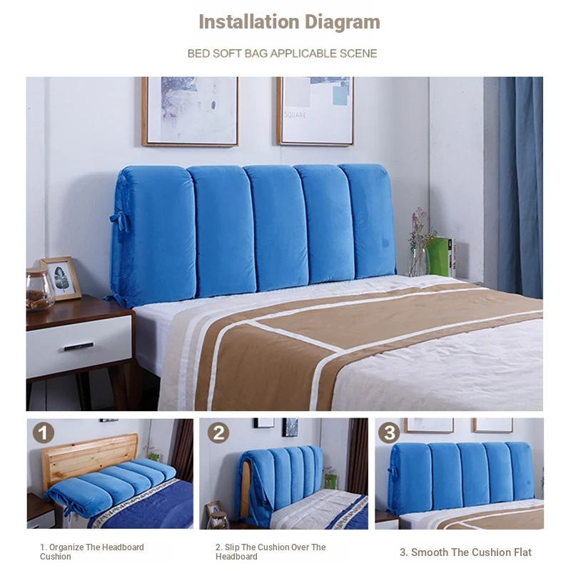 Customizable Soft Fabric Headboard Cover with Large Cushion - Modern Minimalist Design, Removable & Washable, Anti-Collision Protection for a Princess Bedroom