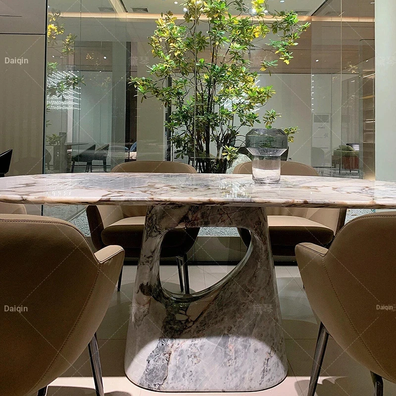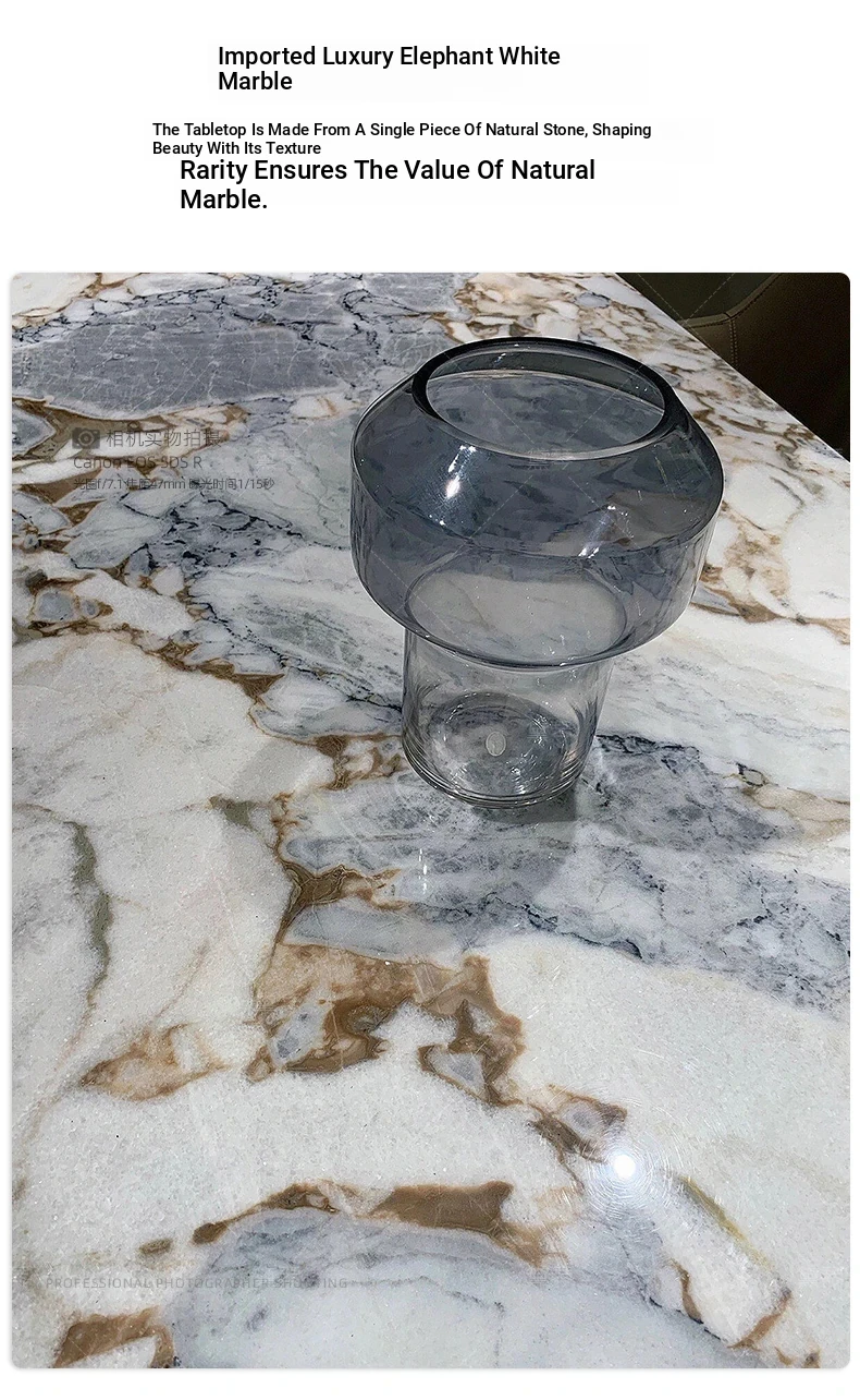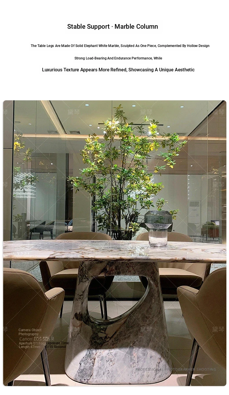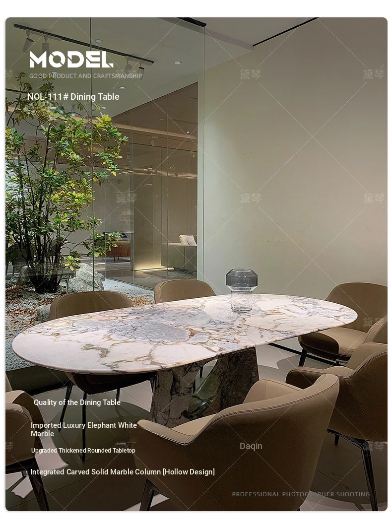DQ Daichin Imported Elephant White Italian Minimalist Luxury Dining Table for Spacious Designer Villas - Elevate Your Dining Experience with Sophisticated Stone Design