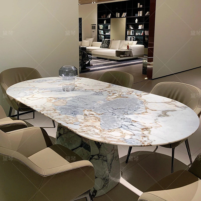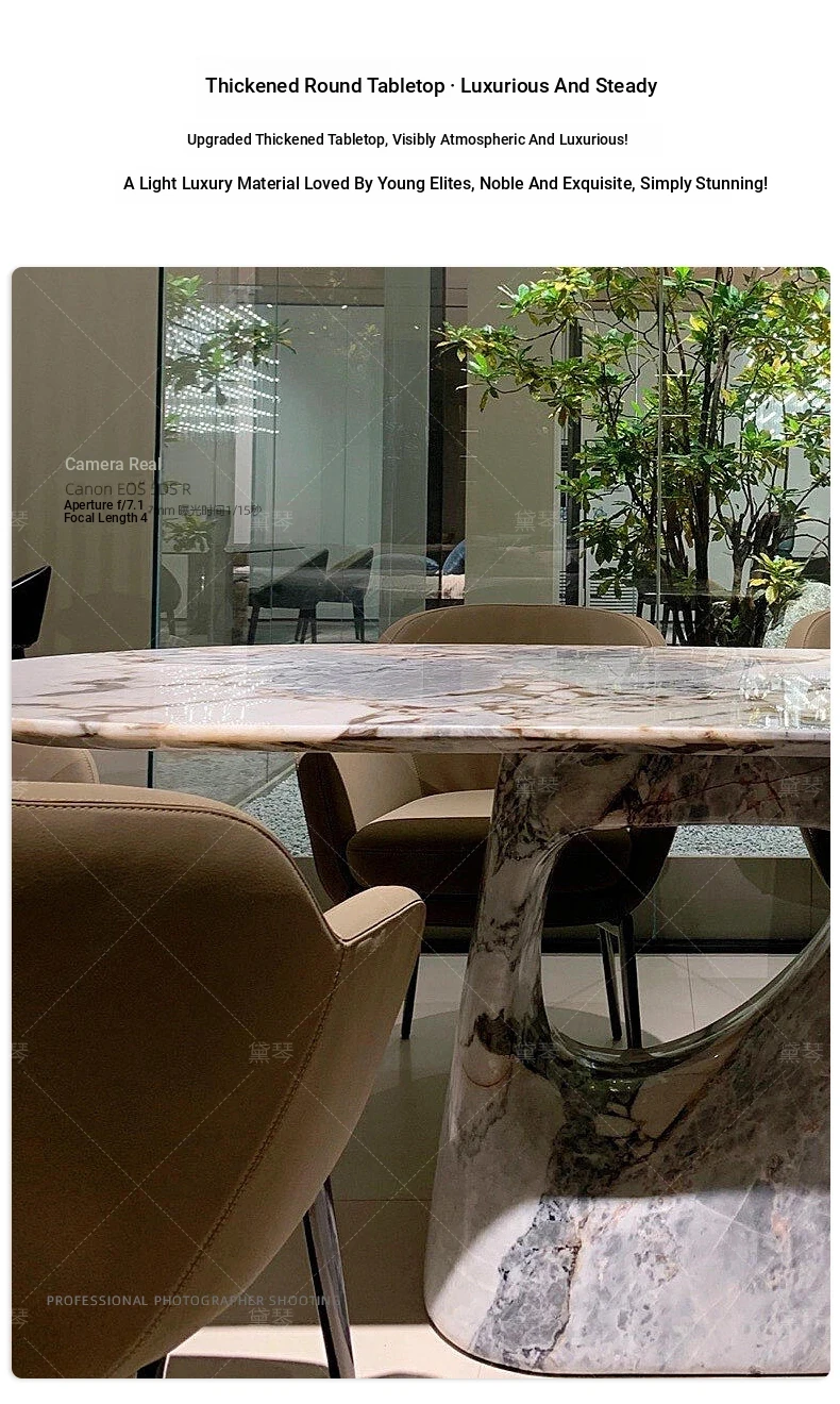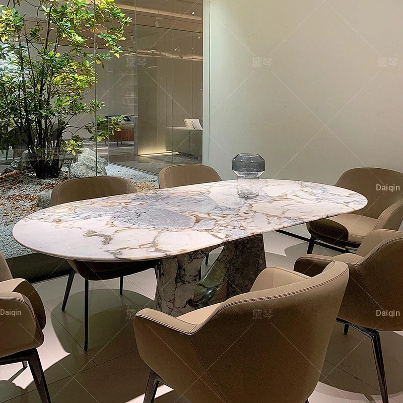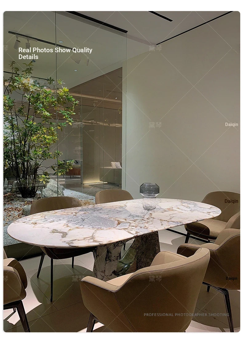 DQ Daichin Imported Elephant White Italian Minimalist Luxury Dining Table for Spacious Designer Villas - Elevate Your Dining Experience with Sophisticated Stone Design