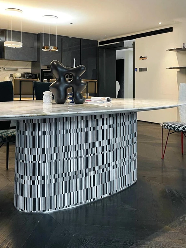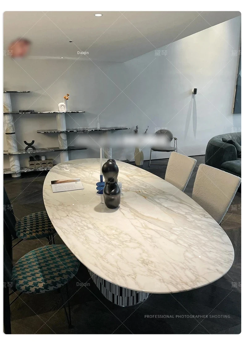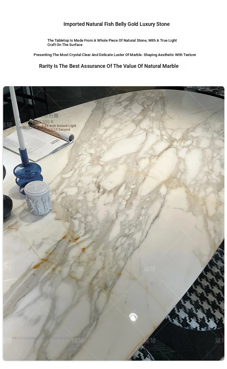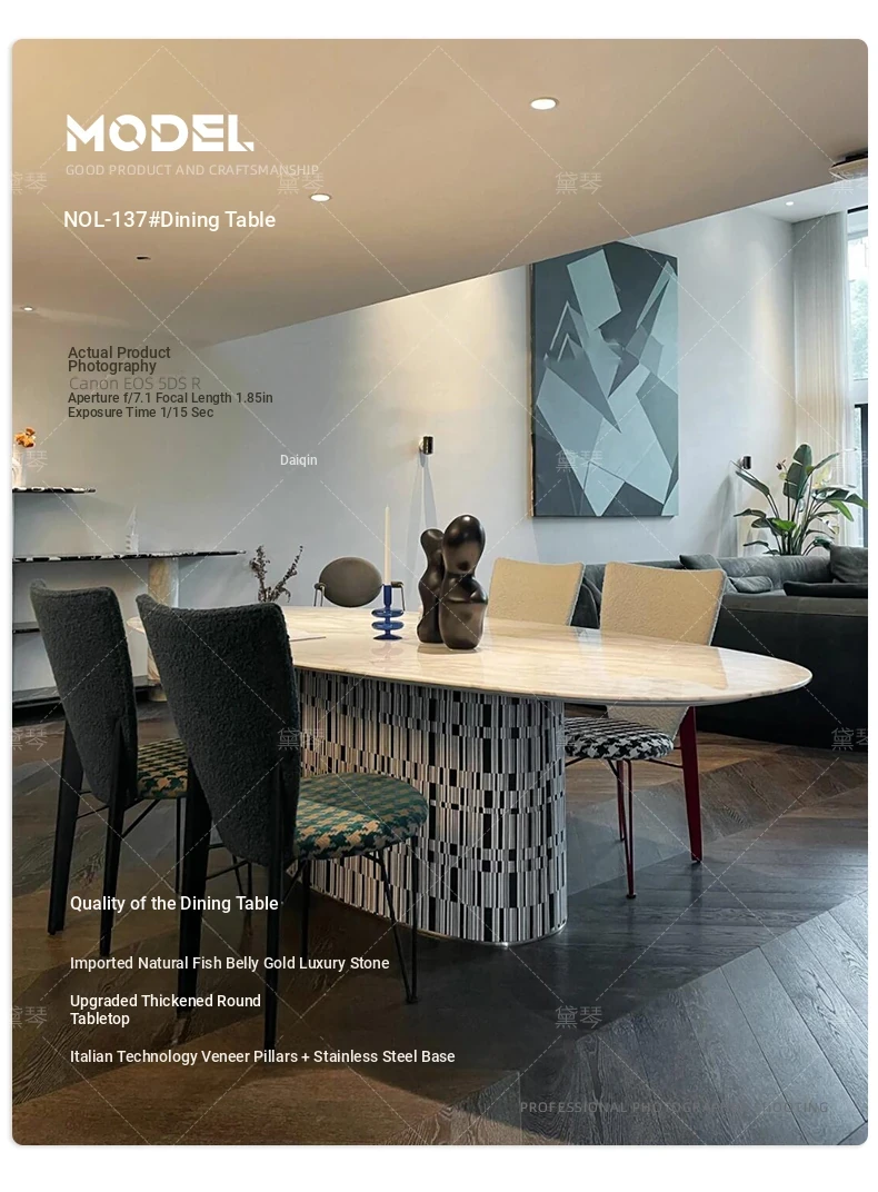 DQ Daichin Italian Luxury Imported Stone Fish Belly Gold High-End Villa Minimalist Long Dining Table
