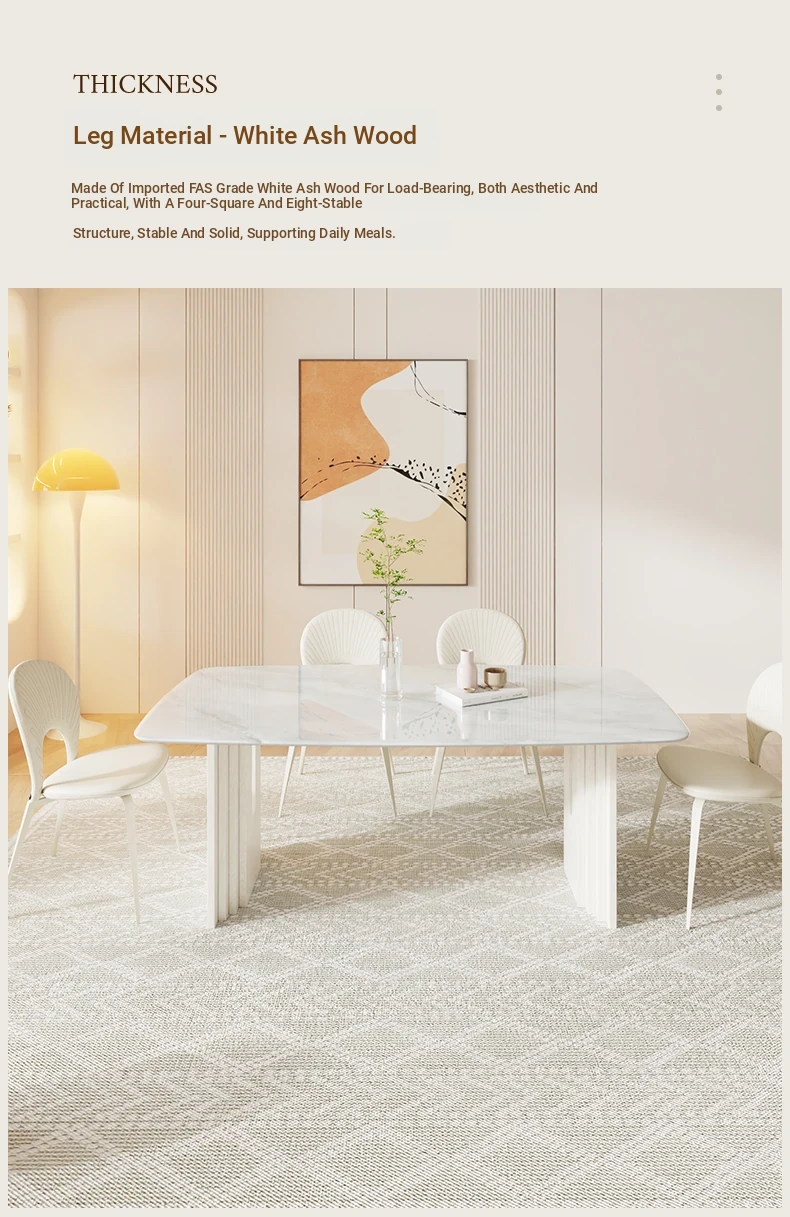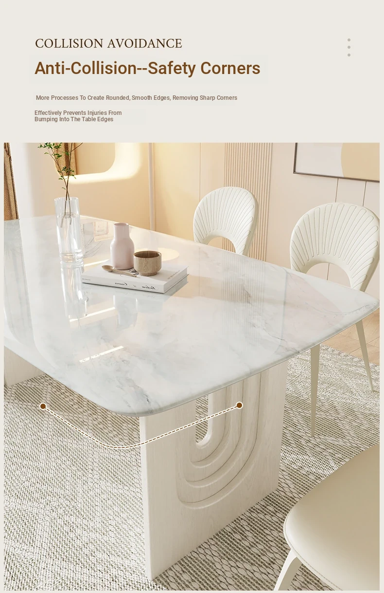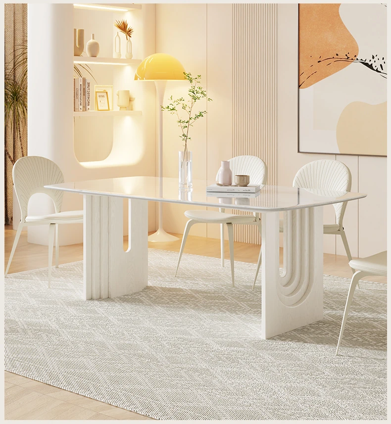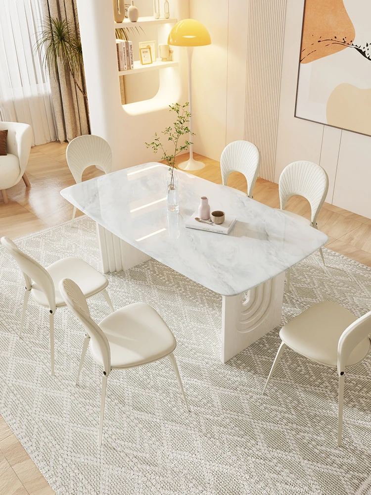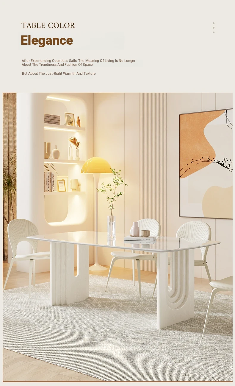 Elegant Cream Minimalist Solid Wood Marble Dining Table - Luxurious High-End Rectangular Design for Small Spaces, Modern White Dining Table