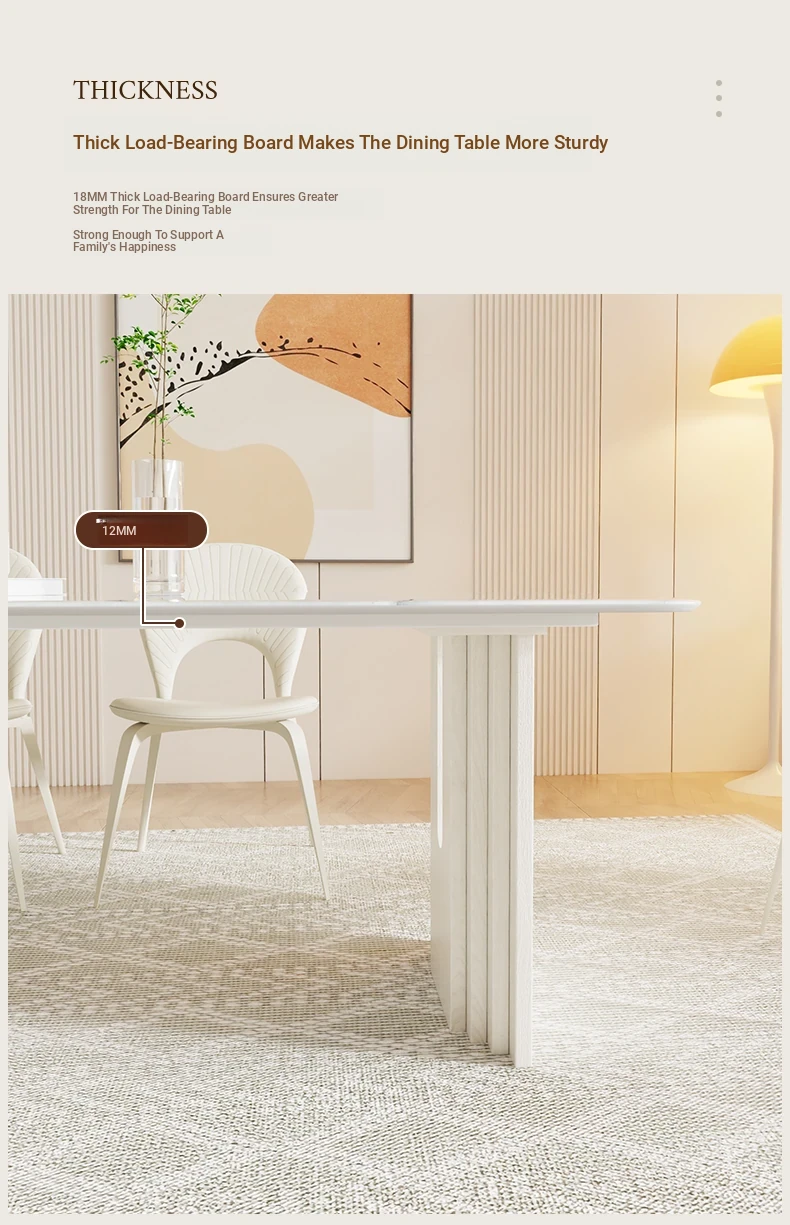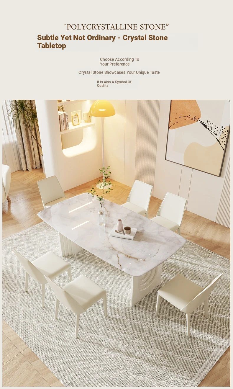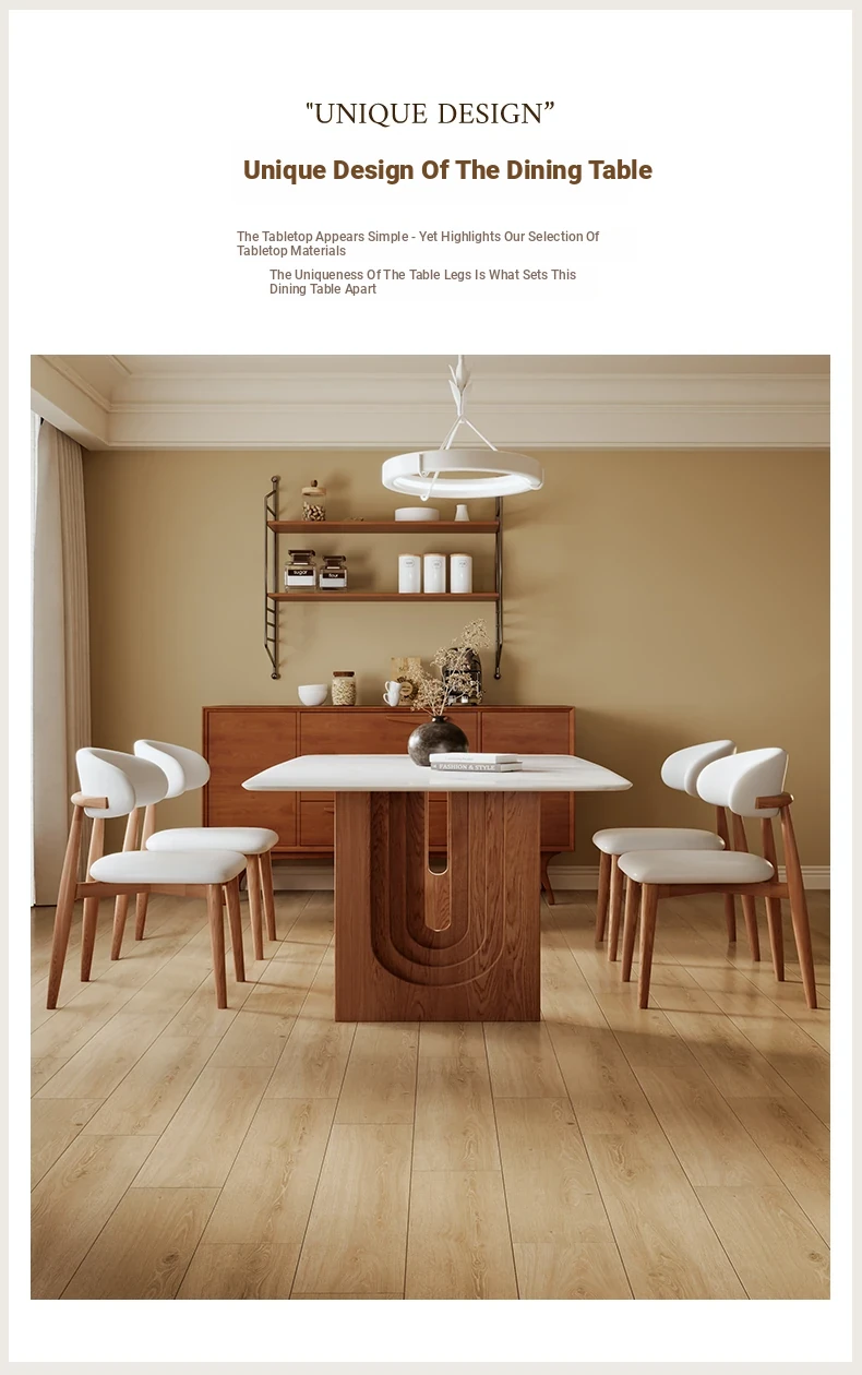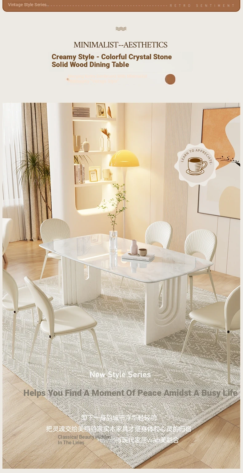 Elegant Cream Minimalist Solid Wood Marble Dining Table - Luxurious High-End Rectangular Design for Small Spaces, Modern White Dining Table