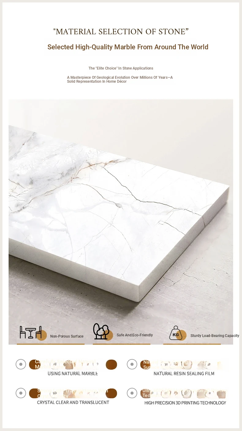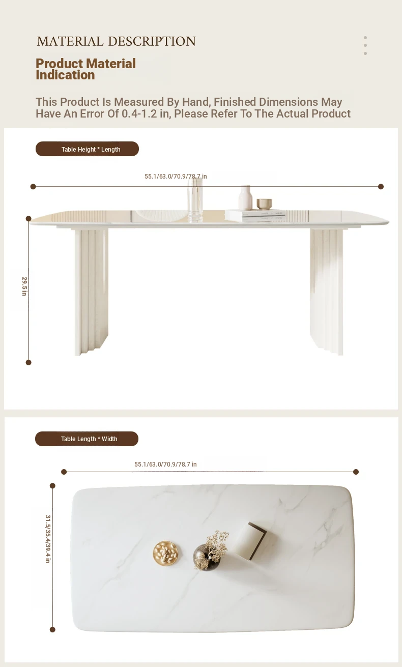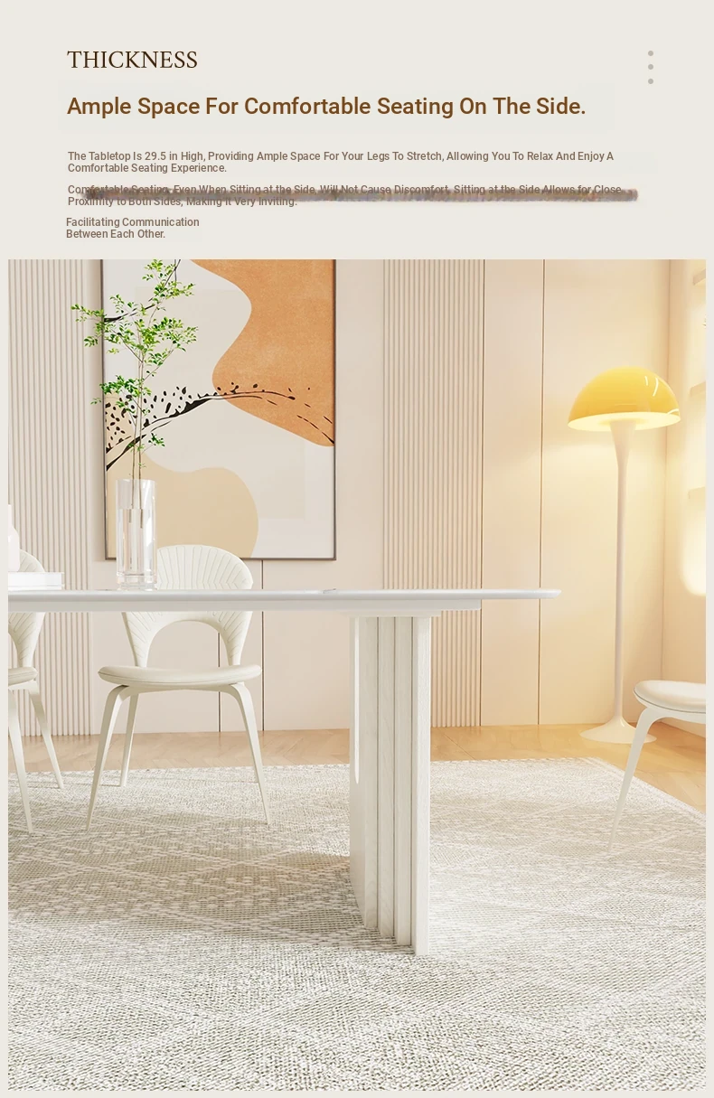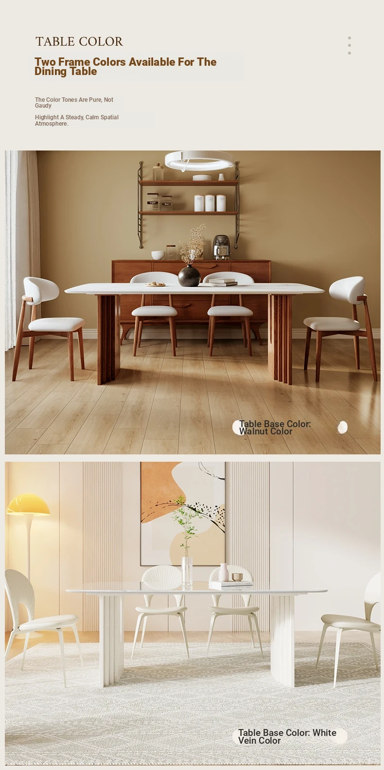 Elegant Cream Minimalist Solid Wood Marble Dining Table - Luxurious High-End Rectangular Design for Small Spaces, Modern White Dining Table