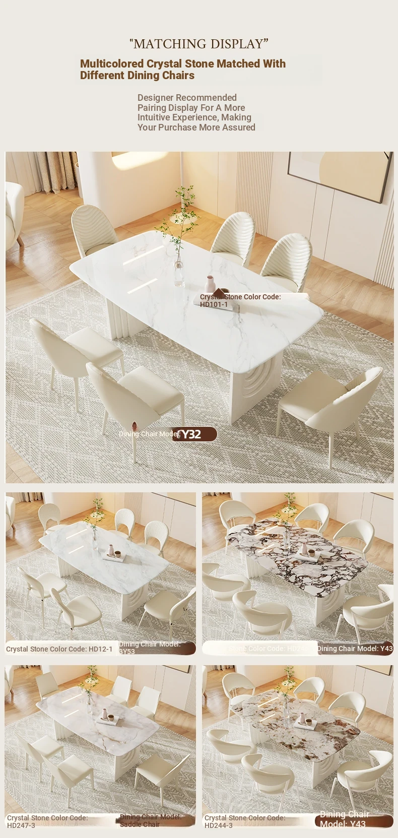 [Classy luxury stone, colored crystal stone + ash wood feet] 78.74in single dining table