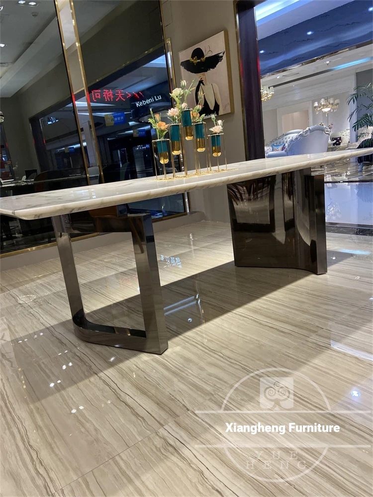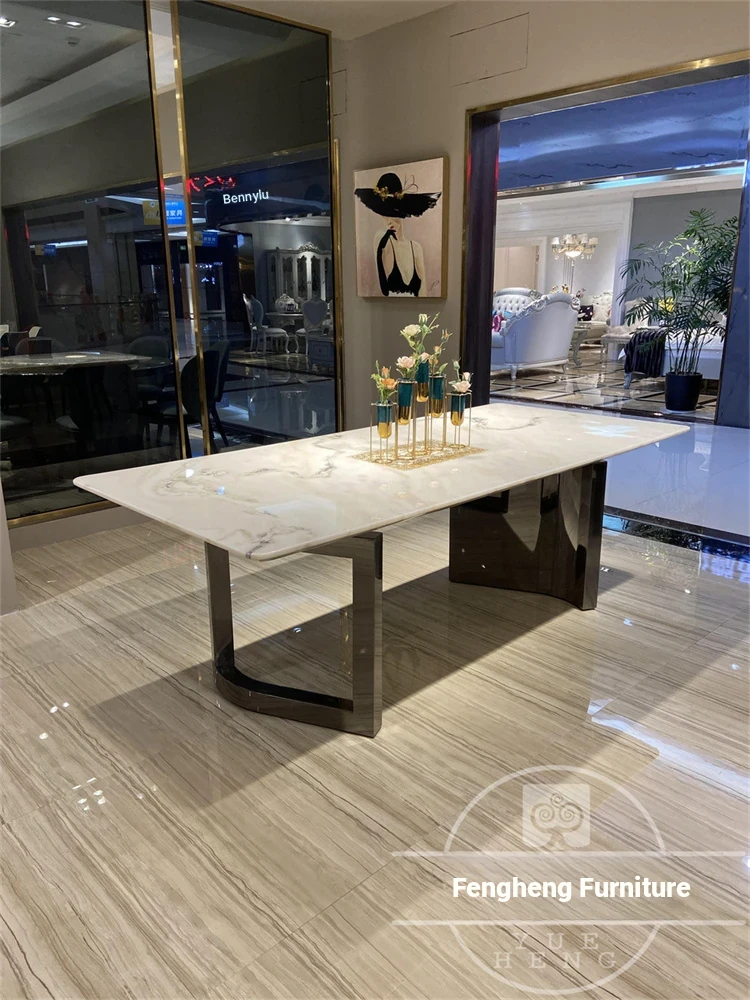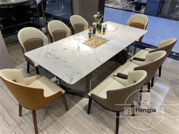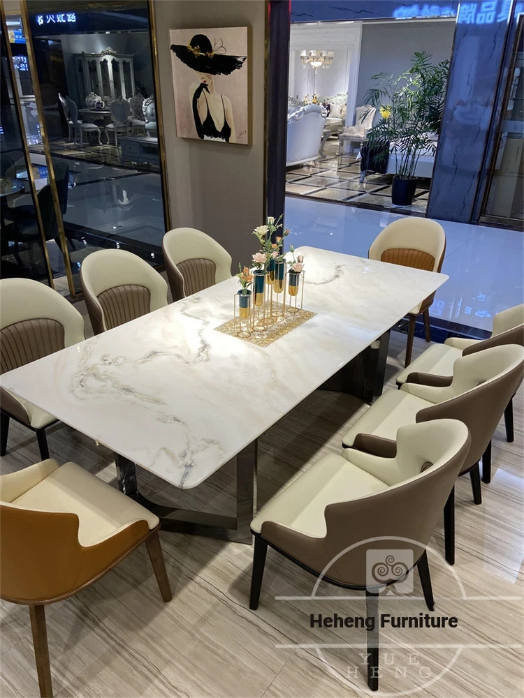 Fendi White Luxury Stone 70.87 in +90 Table with Eight Chairs