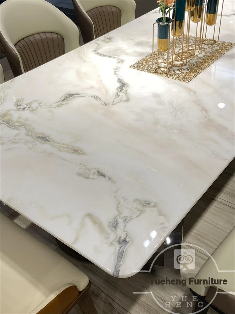 Fendi White Luxury Stone 86.61 in 43.31 in Table with 8 Chairs