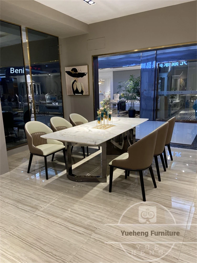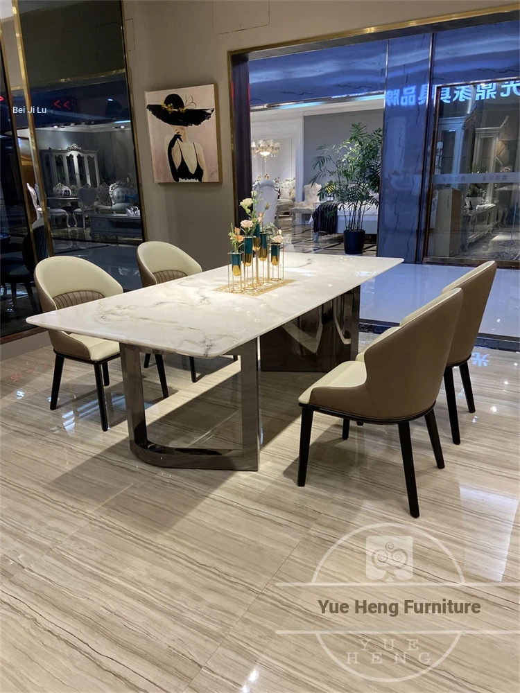 Fendi White Luxury Stone 70.87 in +90 Table with Six Chairs