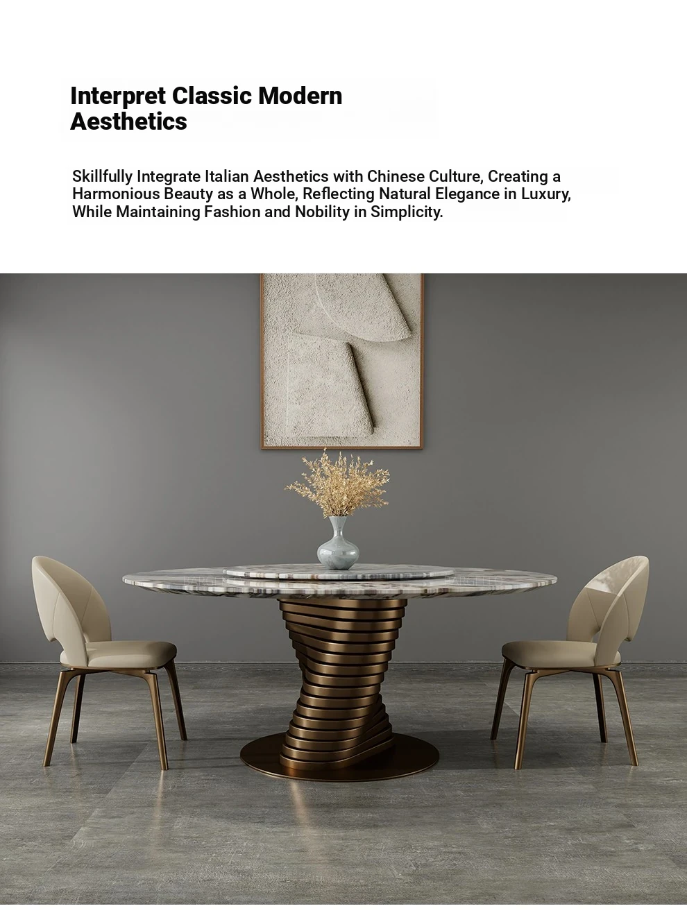 Elegant Italian Minimalist Round Dining Table with Natural Marble - Premium Soft Decoration Solution for Modern Homes